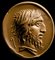Facing left, the barbarian is characterized by marked facial features and thick hair: aquiline and prominent nose, protruding cheekbone, and thin neck. Long hair ending in untidy locks, thick beard and mustache. His neck with a torque collar, typically worn by Gallic and British tribes (see sculpture by the Dying Gallia, Capitoline Museums). Behind the character's neck, the lituus, symbol referring to Julius Caesar and his conquests in Gallia and Britain. Rare subject, well executed with a realistic sense. Signs of wear.
