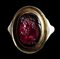 Lotto 85 | A roman garnet intaglio mounted on a Grand Tour gold ring. Bust of Hercules.