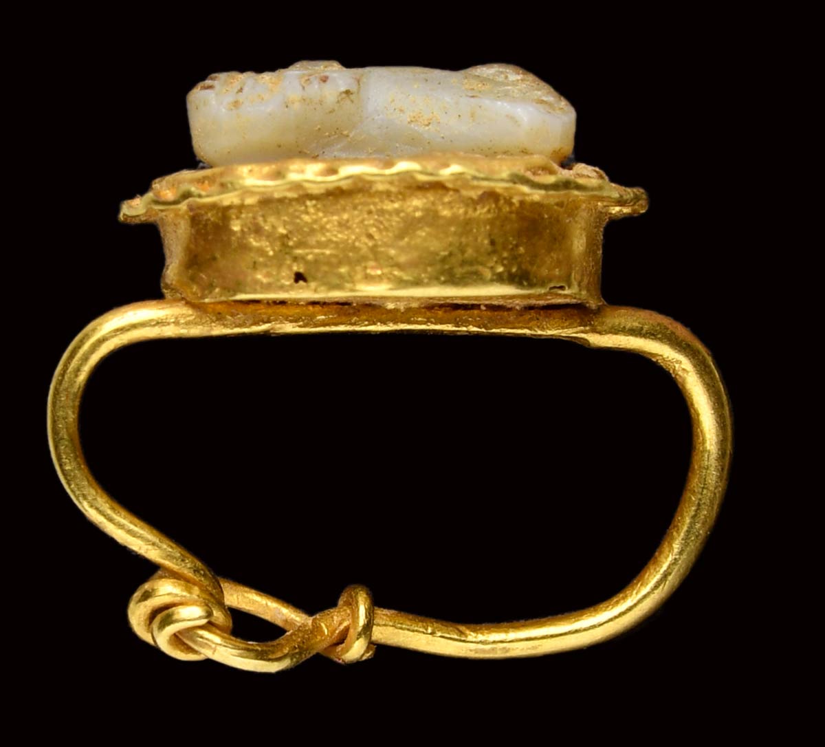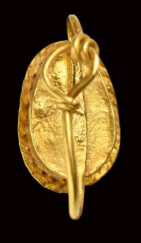 Lotto 89 | A roman two-layered onyx cameo set in an antique gold earring.