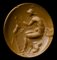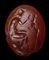 The scene depicts a male character seated facing right intercessing with an hermaic idole in front of him. The presence of a tail behind the character suggests that he is a satyre. Groundline. Small chips on the edge.