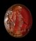 The goddess is facing right with her typical attributes. Groundline. Small crack on the lower part of the stone. The stone with a vivid orange color is characterized by small dark inclusions.