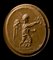 The ring shows a rounded hoop flatten within with rectangular terminals each set with three brilliants. The oval bezel set with a large banded agate intaglio showing a winged Victory standing in movement and facing left. She wears a long chiton and himation. The left arm toward, she holds a laurel wreath, meanwhile her right hand holds a branch. Groundline.
