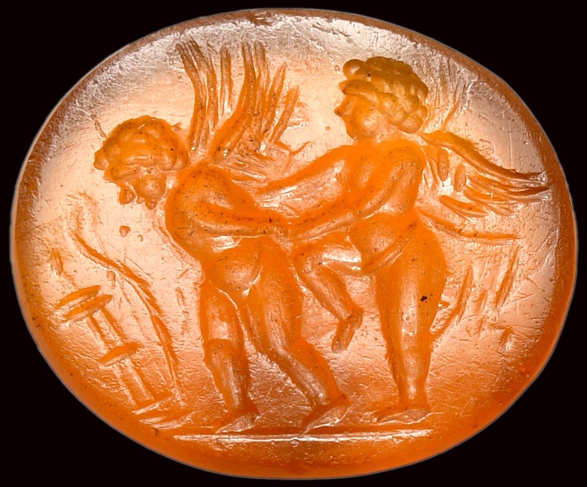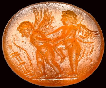 Lotto 169 | A roman carnelian intaglio. Eros and Anteros.
