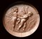 The two winged creatures, intent in the struggle, are naked and are both characterized by thick hair. An erote attacks from behind his opponent, blocking his hands on his back and making him his prisoner. Anteros, taken prisoner, appears defeated and with his head tilted forward. Below, a bow and a quiver, the reason for the dispute: the arms of Love. Groundline. Delicious scene composed with grace and irony. Interesting stylistic rendering. Wear marks.