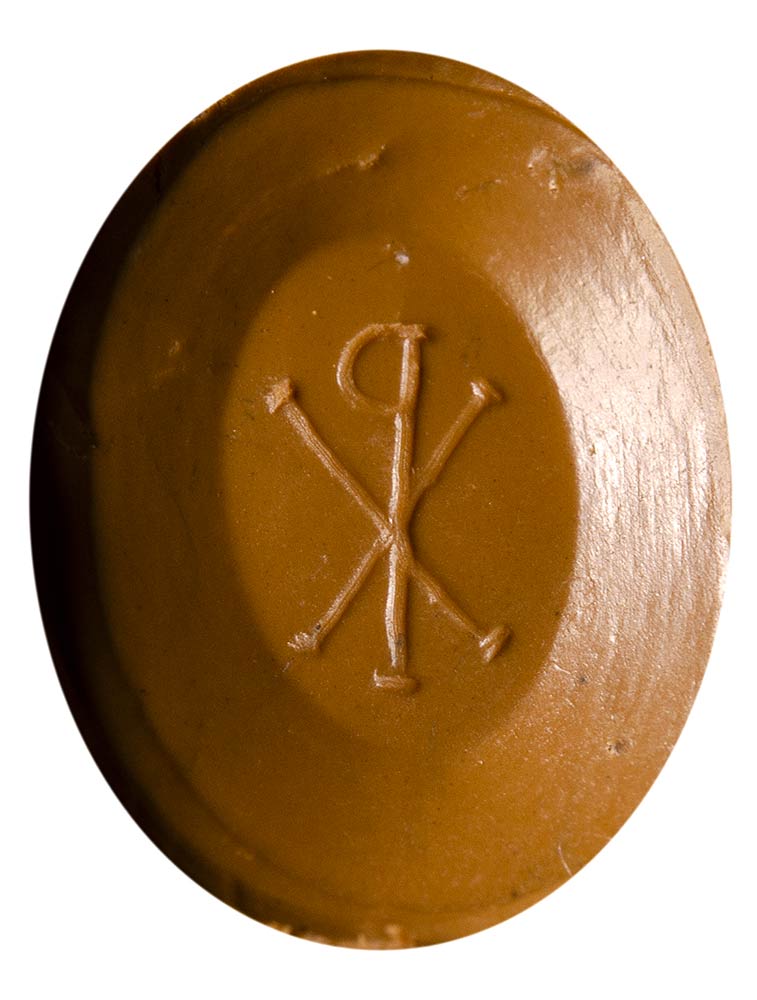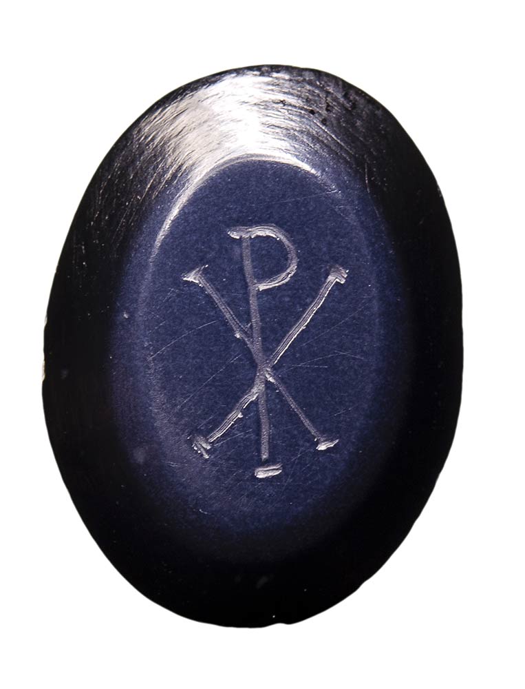In the center of the stone, the Chi-Rho — the early Christian symbol.