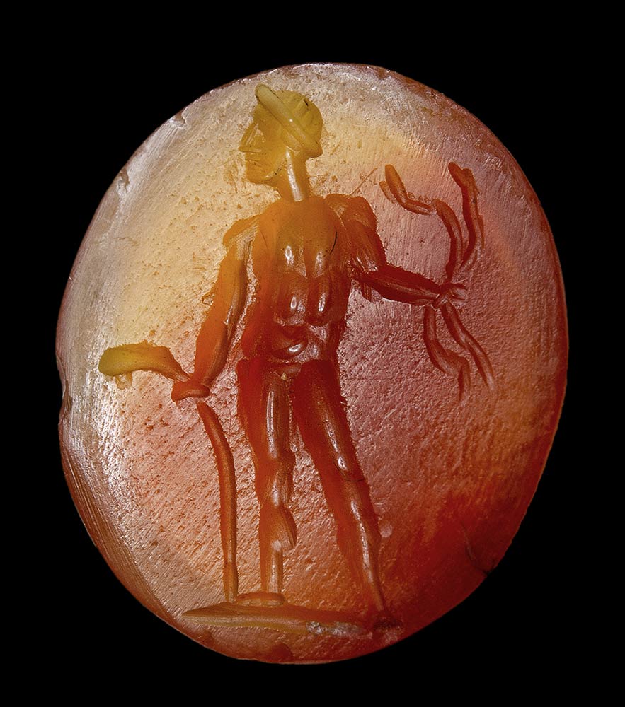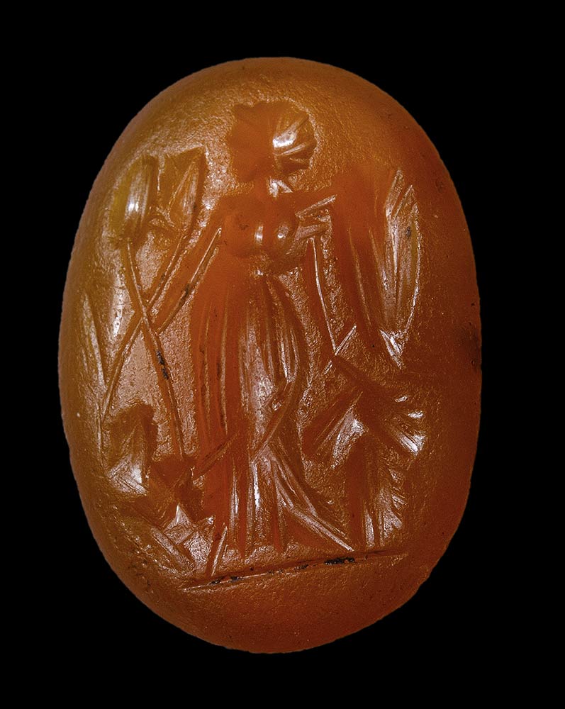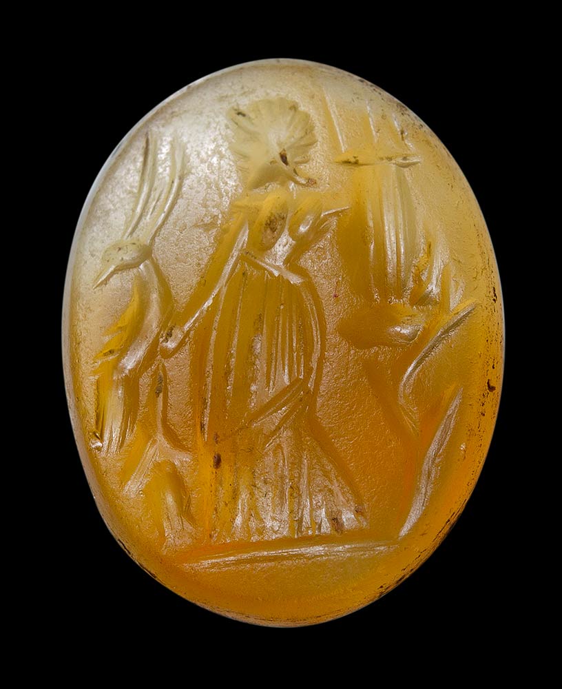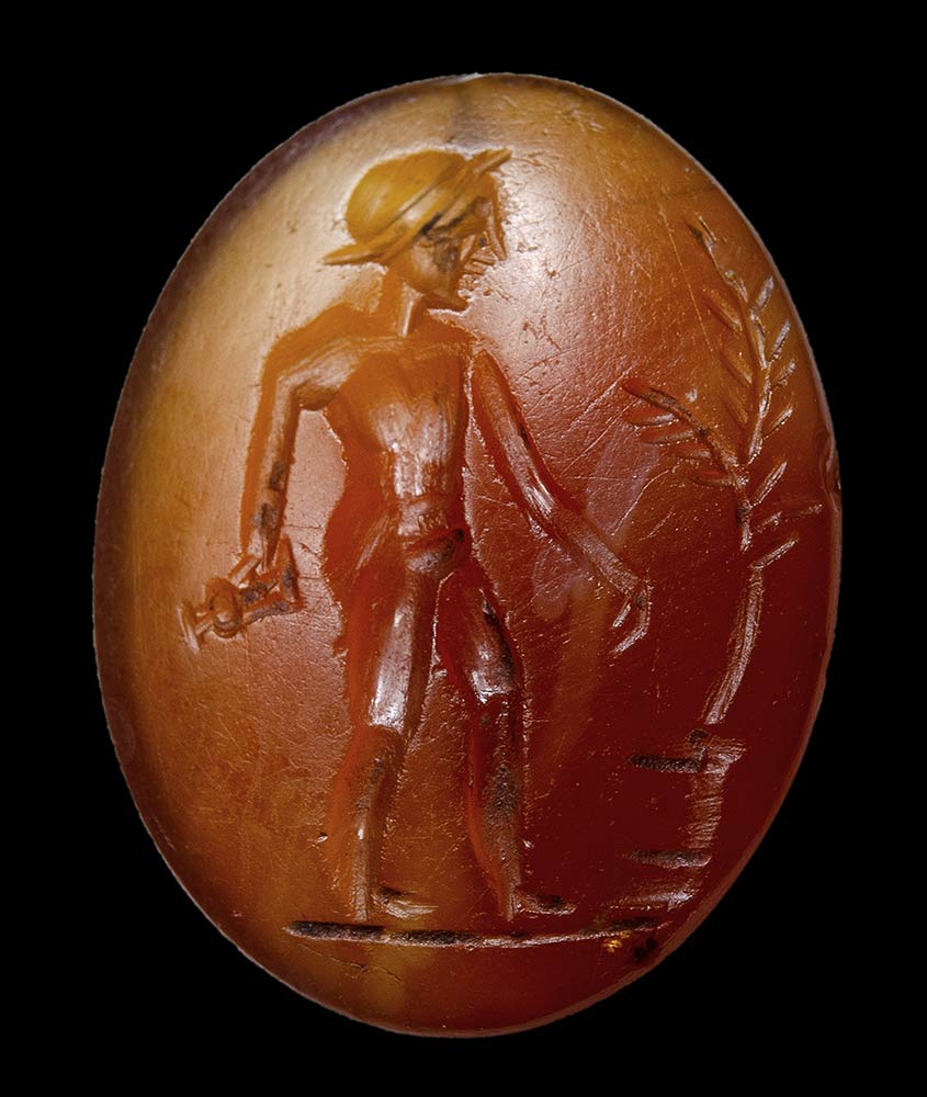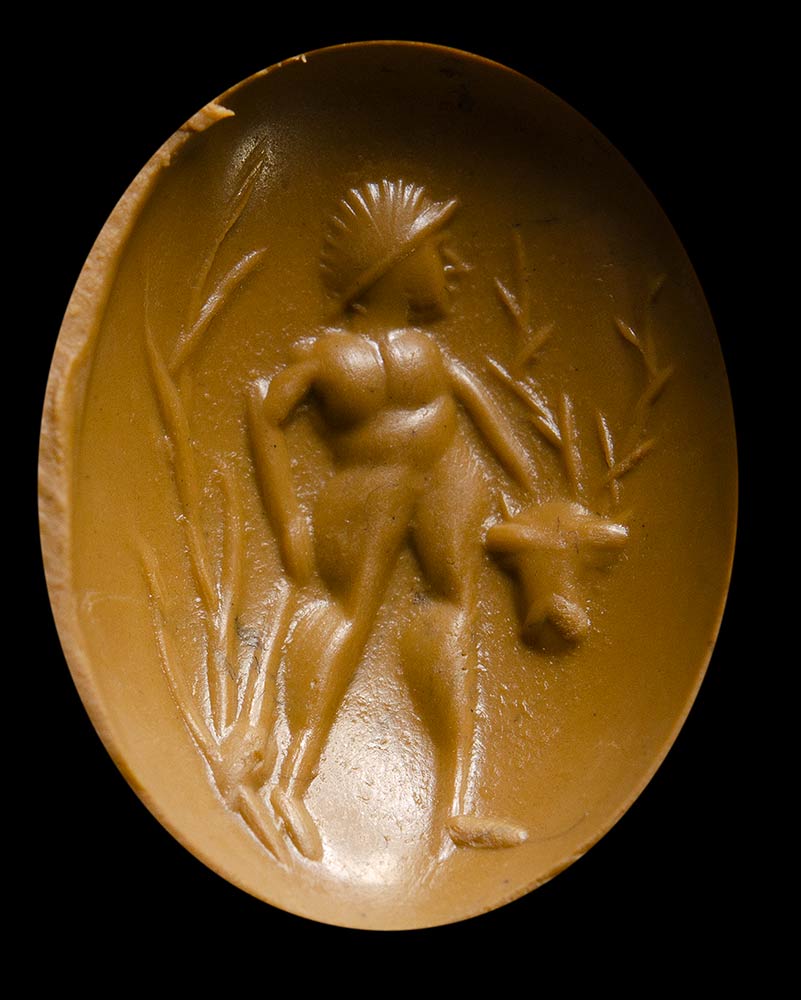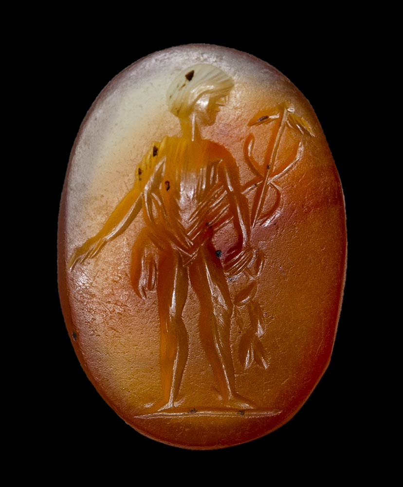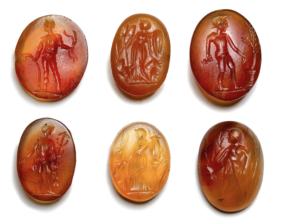 A group of 6 postclassical carnelian intaglios. Heroic and divinities figures.
