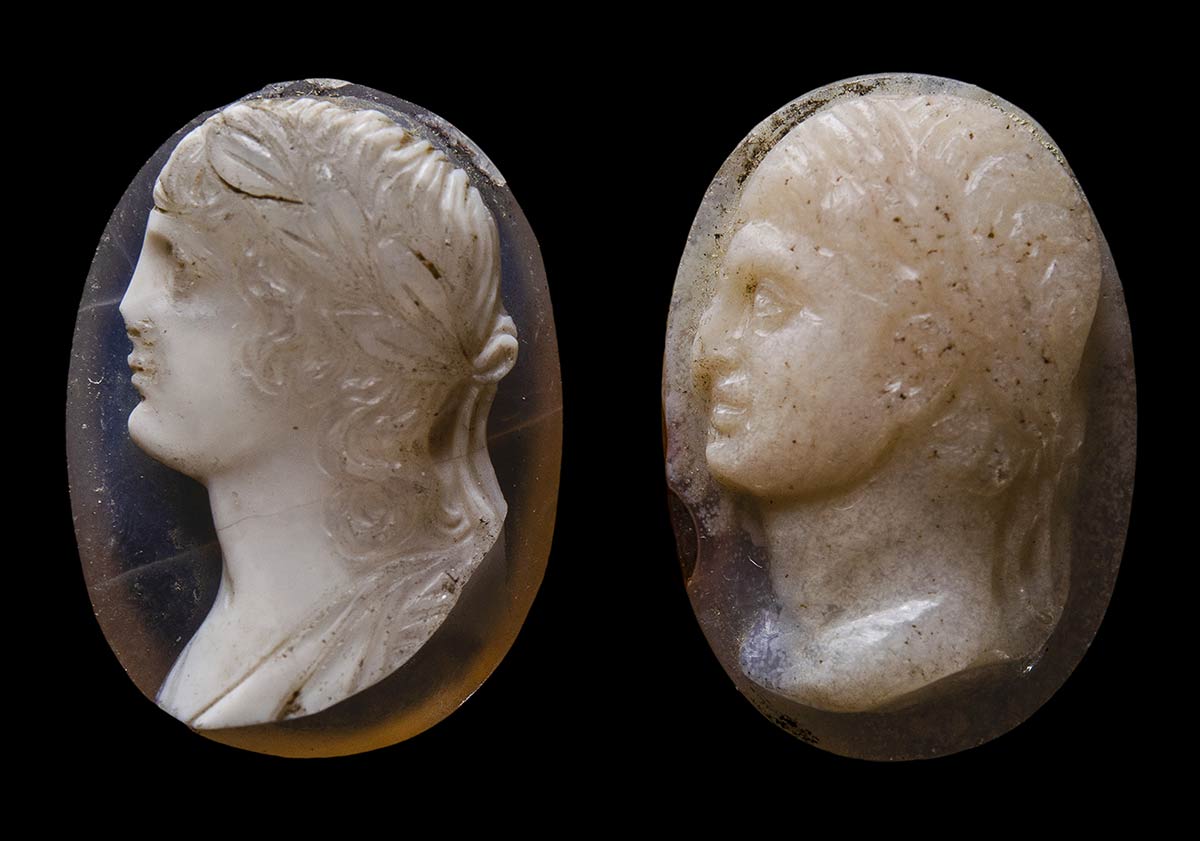 A lot of 2 postclassical double-layered agate cameos. Imperial portraits.