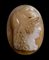 The young hero is facing right, characterized byu his typical phrygian hat. The sensousness of his features shows a delicate rounded chin, small plain lips, straight this nose and almond-shape lidded eye. The face is framed by long wavy hair with curly terminals going through the base of his neck.