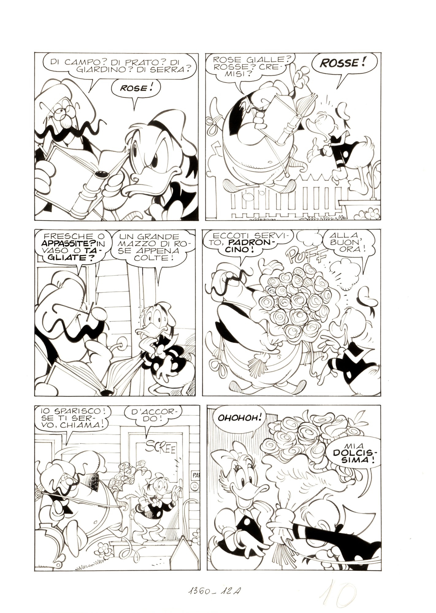 Tavola originale realizzata da Cavazzano per "Paperino e il genio maldestro", edita su Topolino n. 1360 a pag. 10 nel Dicembre 1981. Un genio della lampada a dir poco maldestro viene allontanato dal suo ultimo padrone ormai esasperato dai suoi continui errori, il genio sceglie Paperino come suo nuovo padrone...ne combinerà ovviamente di tutti i colori.