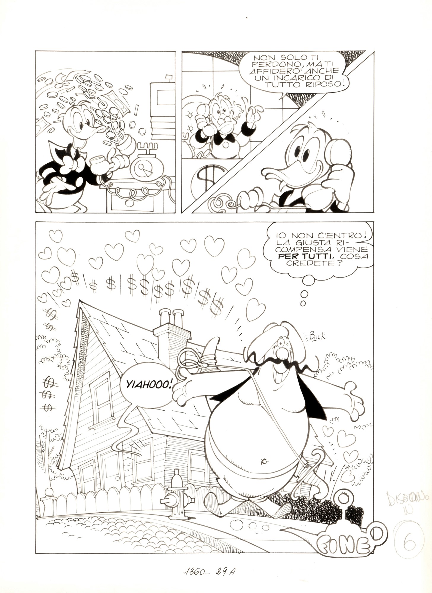 Tavola originale realizzata da Cavazzano per "Paperino e il genio maldestro", edita su Topolino n. 1360 a pag. 27 nel Dicembre 1981. Un genio della lampada a dir poco maldestro viene allontanato dal suo ultimo padrone ormai esasperato dai suoi continui errori, il genio sceglie Paperino come suo nuovo padrone...ne combinerà ovviamente di tutti i colori.
