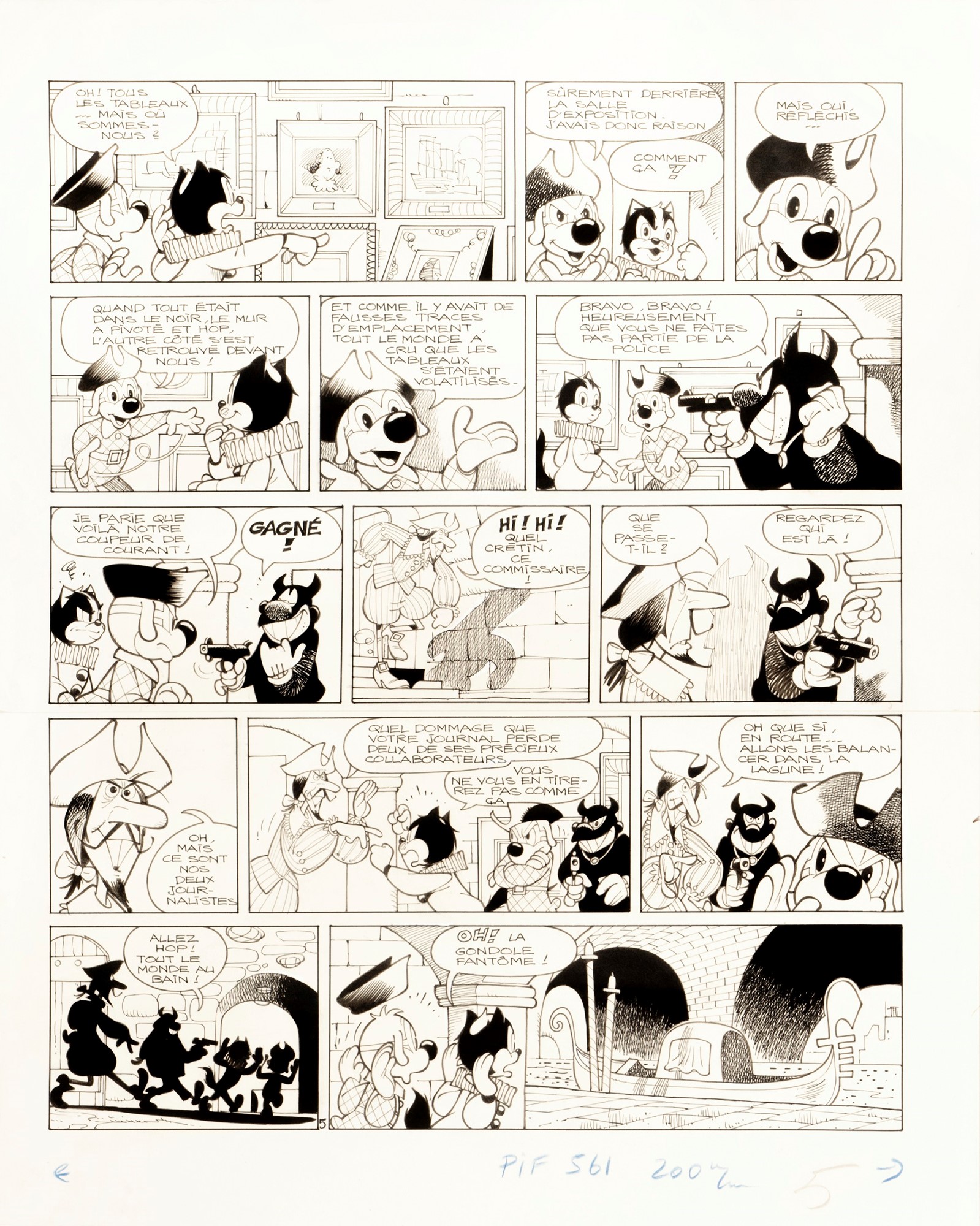 Tavola originale realizzata da Cavazzano per la pag. 5 di "La gondole fantome", edita per la prima volta sulla rivista francese Pif n. 561 nel 1979. Su due pannelli.