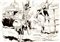 Illustrazione originale realizzata da Attalo per il celebre ciclo de "Le guerre pacioccone", serie di vignette umoristiche pubblicate sul quotidiano romano Paese Sera tra gli anni ´50 e ´60. Lo stesso Attalo presentò così questa serie di opere: "Le guerre pacioccone, combattute, per modo di dire, al rombo di amenità e freddure fra nemici che non possono "attaccarsi" per mancanza di colla e a spari di fucili a tappi". Al retro il testo della vignetta: "Mi hanno detto: "prendi il fucile e vattene alla frontiera...la c'è il nemico che a la frontiera aspetta". Scusi è lei il nemico? Già, ed è più di un'ora che aspetto: un altro se ne sarebbe già andato via! " Firmata.