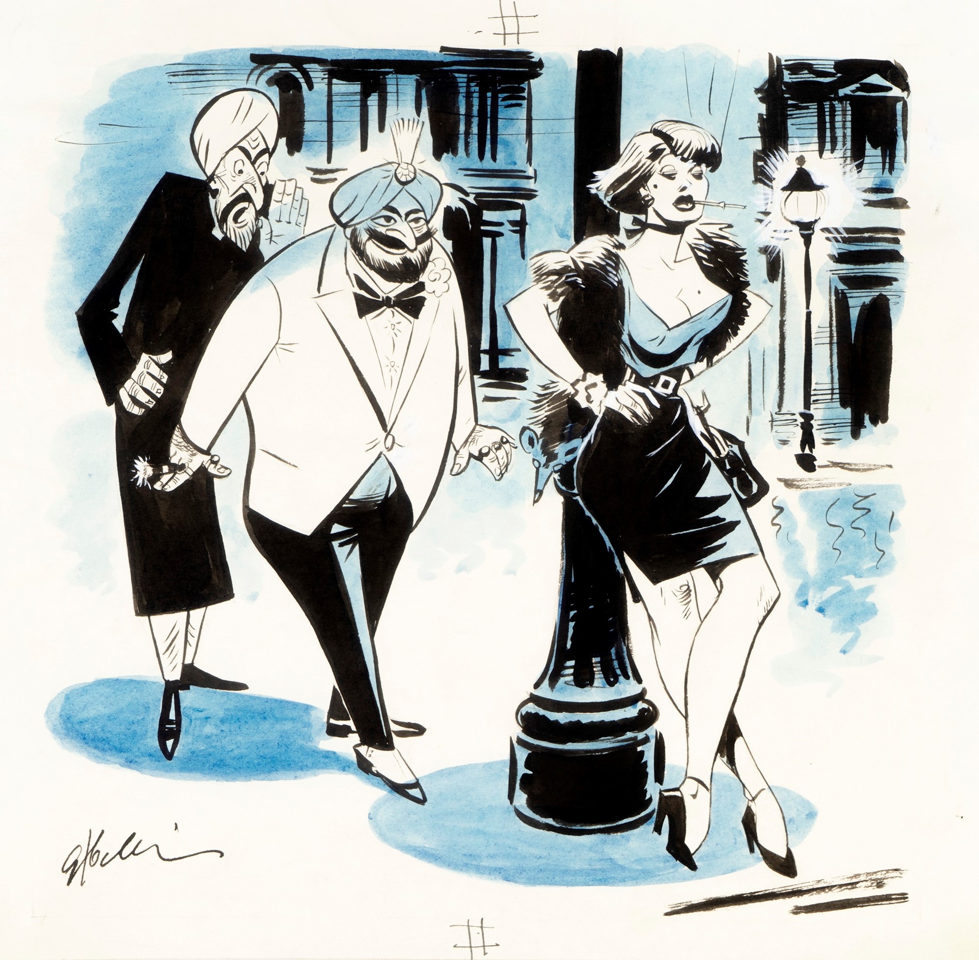 Illustrazione originale realizzata da Belli per il settimanale Il Travaso durante gli anni '50. Lievi pieghe ai margini. Firmata.