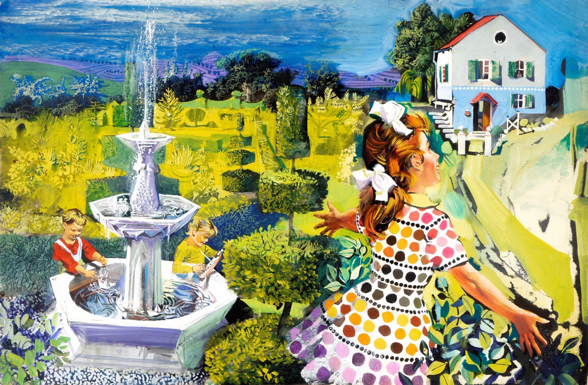 Originale di copertina realizzato da De Gaspari per il sussidiario scolastico "Casa dolce casa", pubblicato dalla casa editrice Aristea durante gli anni '60.