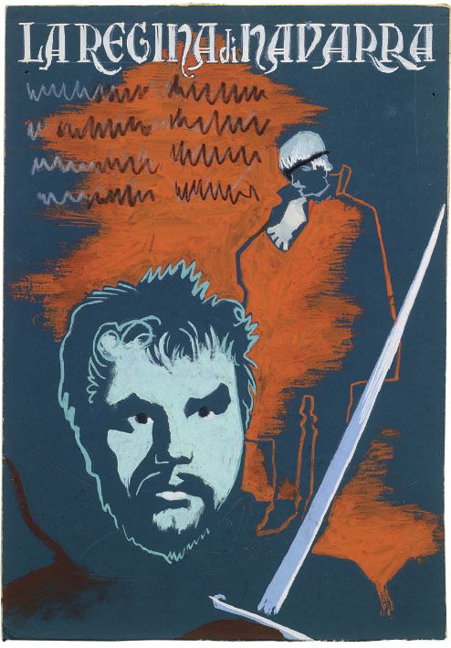 Enrico Prampolini Modena 1894 - Roma 1956 La Regina di Navarra, (1941) Tempera su cartone, cm. 20x14 Al verso: Progetto / di / copertina / Prampolini. Esposizioni: Enrico Prampolini. Taccuini inediti 1942-1956, Modena, Galleria Civica, Palazzina dei Giardini, 24 novembre 1991 - 19 gennaio 1992, cat. pp. 203, 204, n. PM 5, illustrato. Progetto per manifesto.