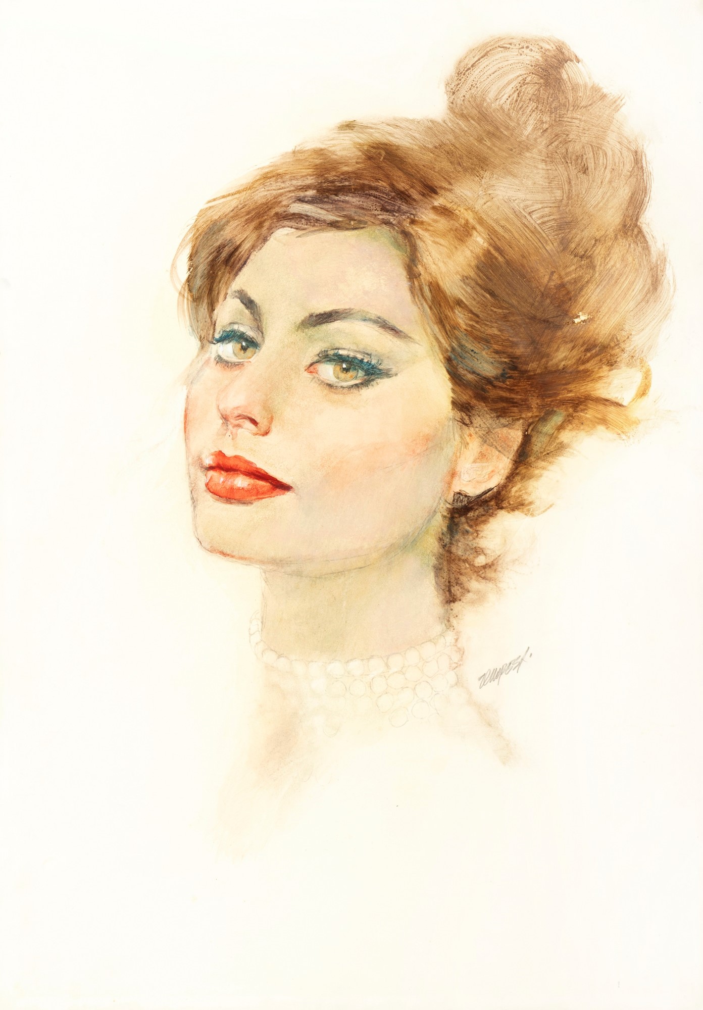 Illustrazione originale realizzata da Tempesti nel 1976 all'interno di una serie di ritratti di celebri attori del cinema. Firmata e datata al retro.