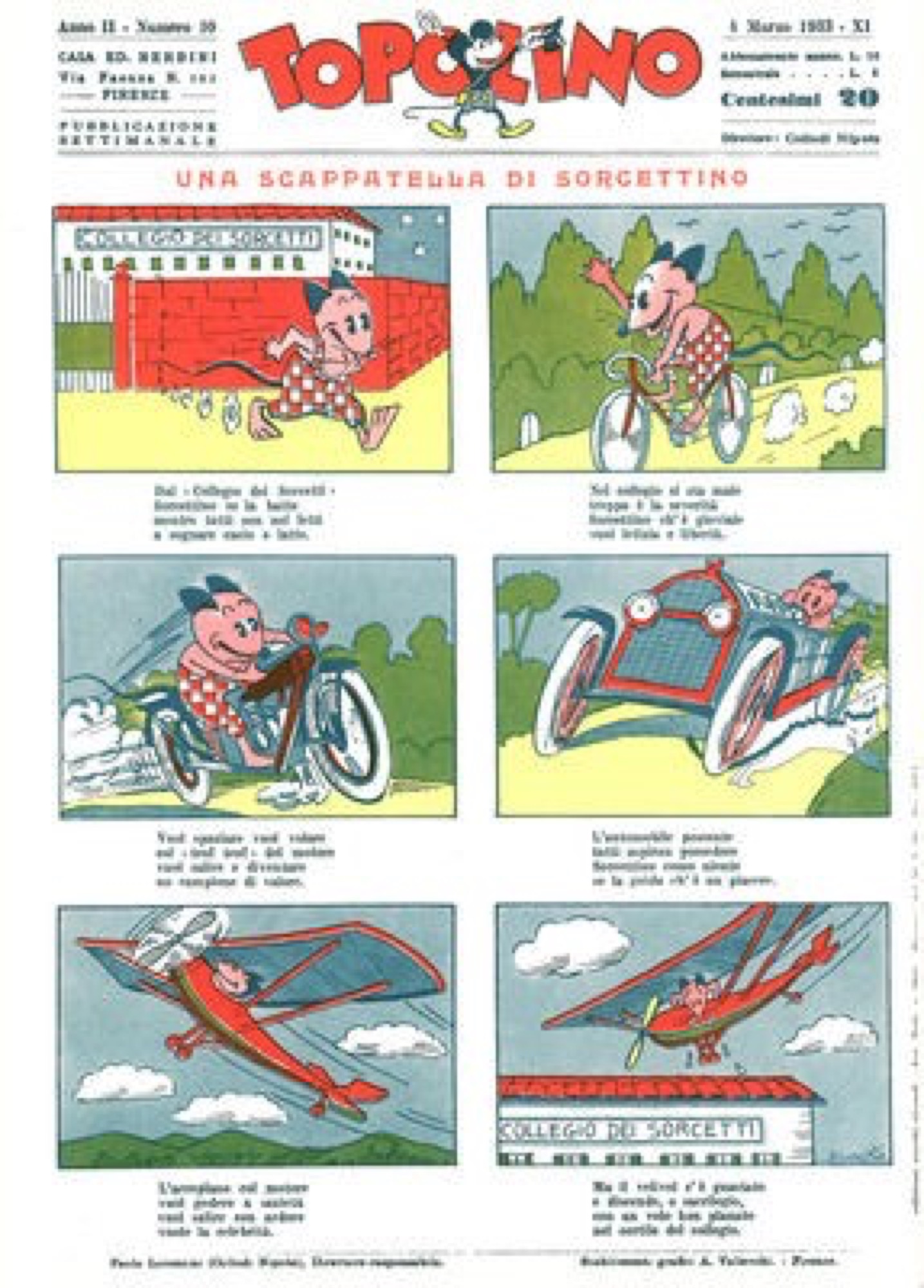 Buriko (Antonio Burattini) - Topo Lino (Sorcettino) - Una scappatella di Sorcettino, 1933