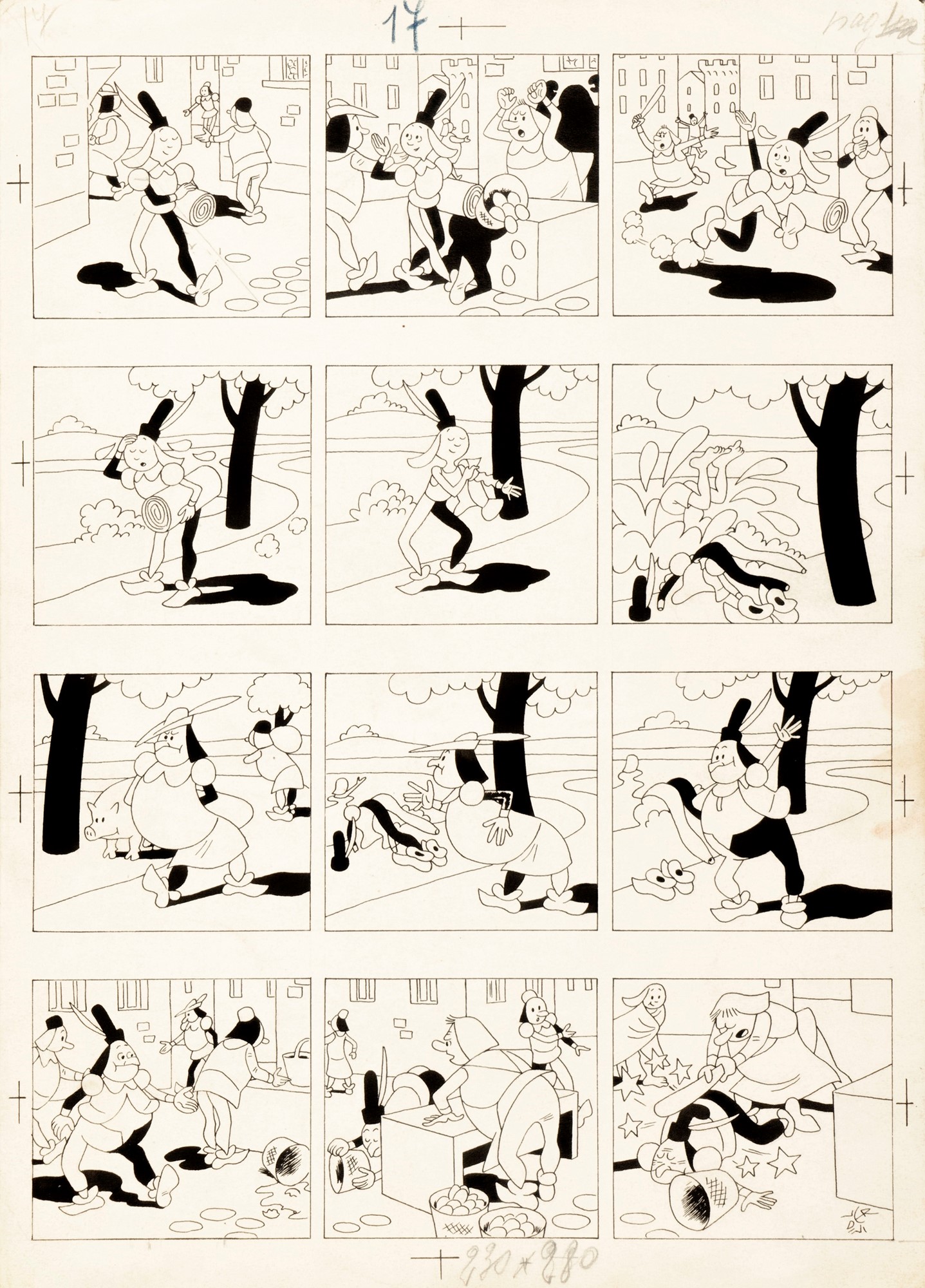Tavola originale realizzata da Verdini per "Caramella", pubblicata su Il Balilla negli anni ´30. Acquerellata al retro. Firmata.