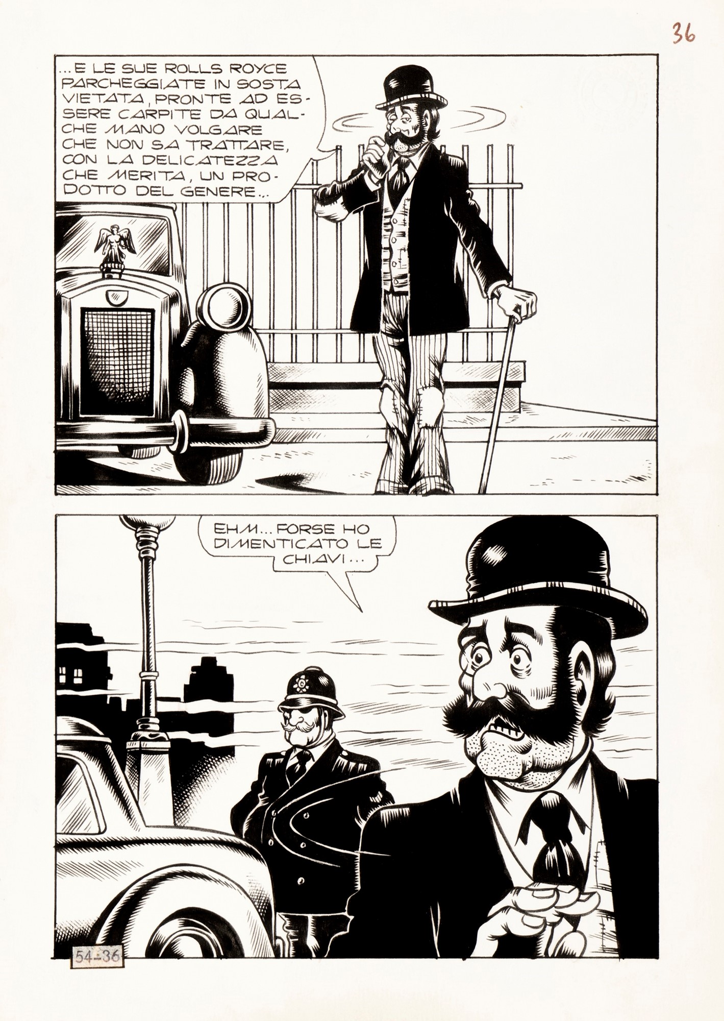 Tavola originale realizzata da Magnus per "L'inghippo di Bu-Bu", edita su Alan Ford n. 54 a pag. 36 dalla Corno nel 1973.