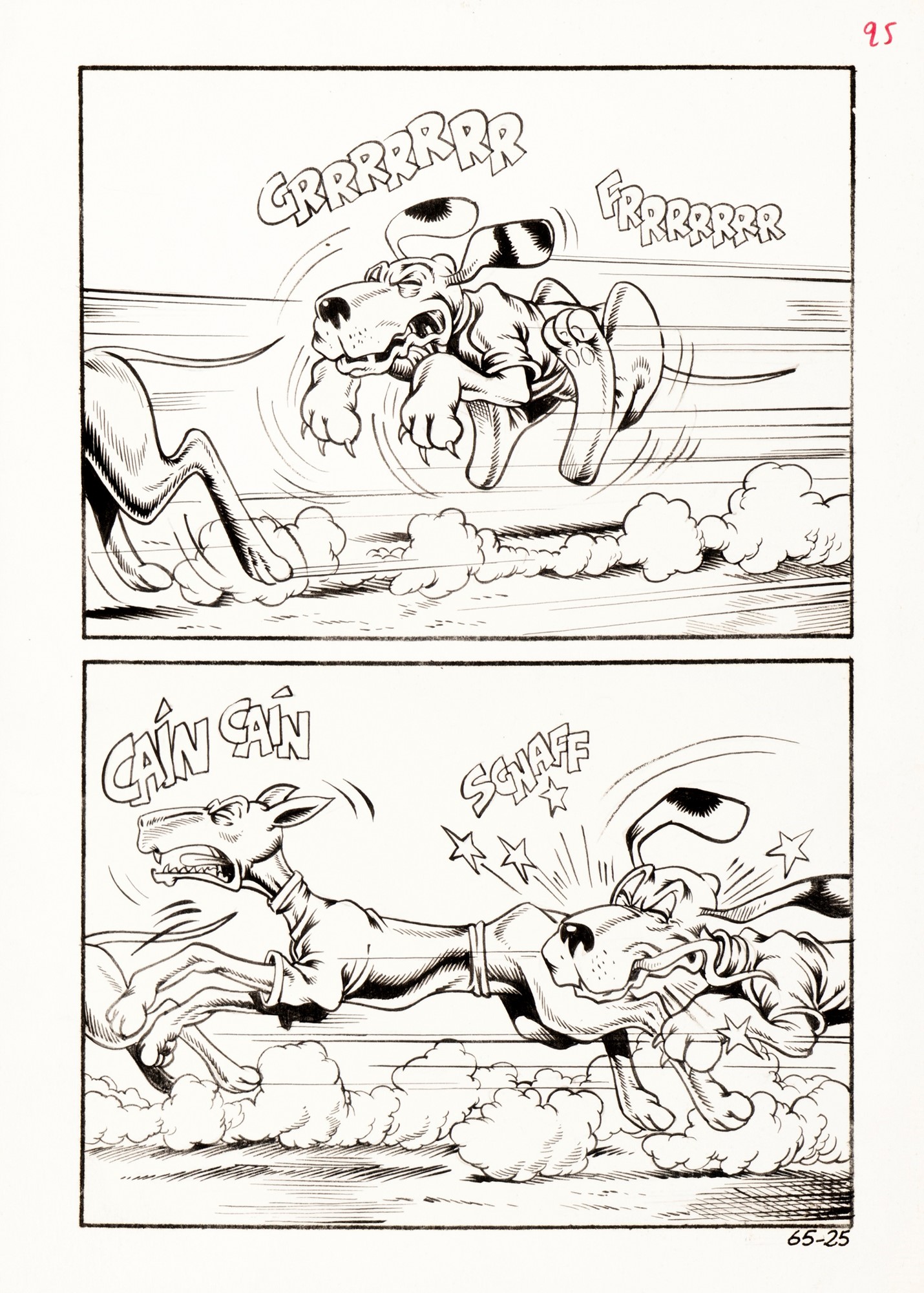 Tavola originale realizzata da Magnus per "Un tiro mancino", edita su Alan Ford n. 65 a pag. 25 dalla Corno nel 1974.