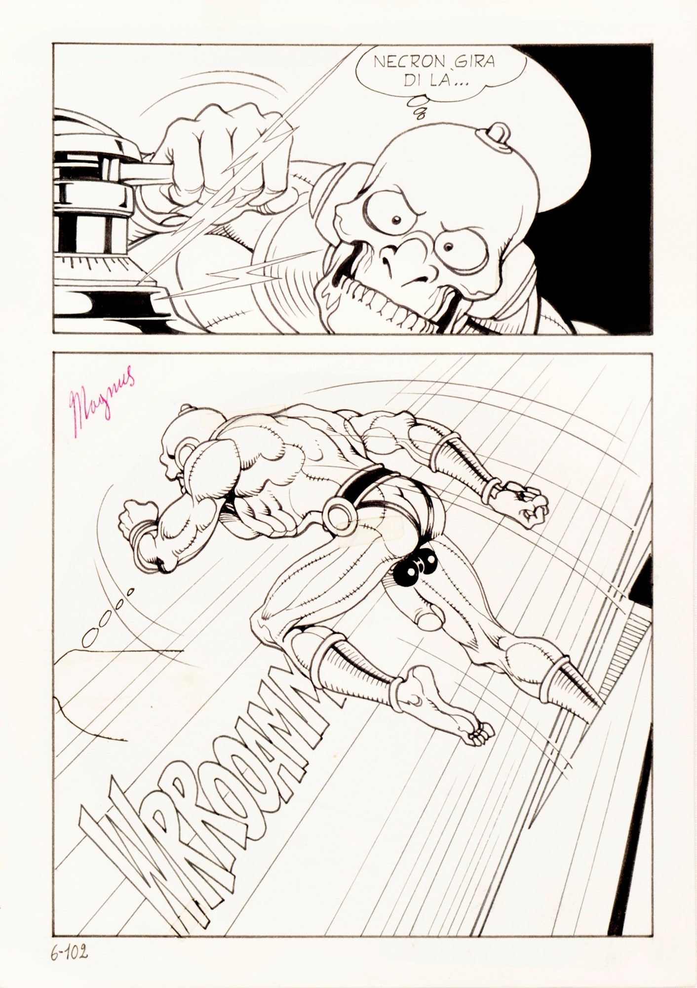 Tavola originale realizzata da Magnus per "Strage in vagone letto", edita su Necron n. 6 a pag. 102 dalla Edifumetto nel 1981. Firmata.