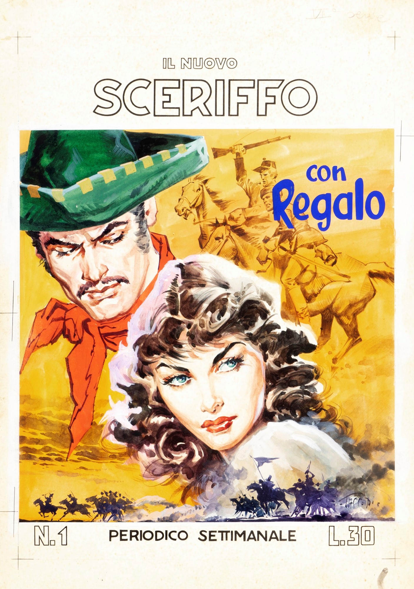 Originale di copertina realizzato da Tacconi per "In nome della legge", edito su Il Nuovo Sceriffo n. 1 dall'Editrice Torelli nel 1957. Firmato.