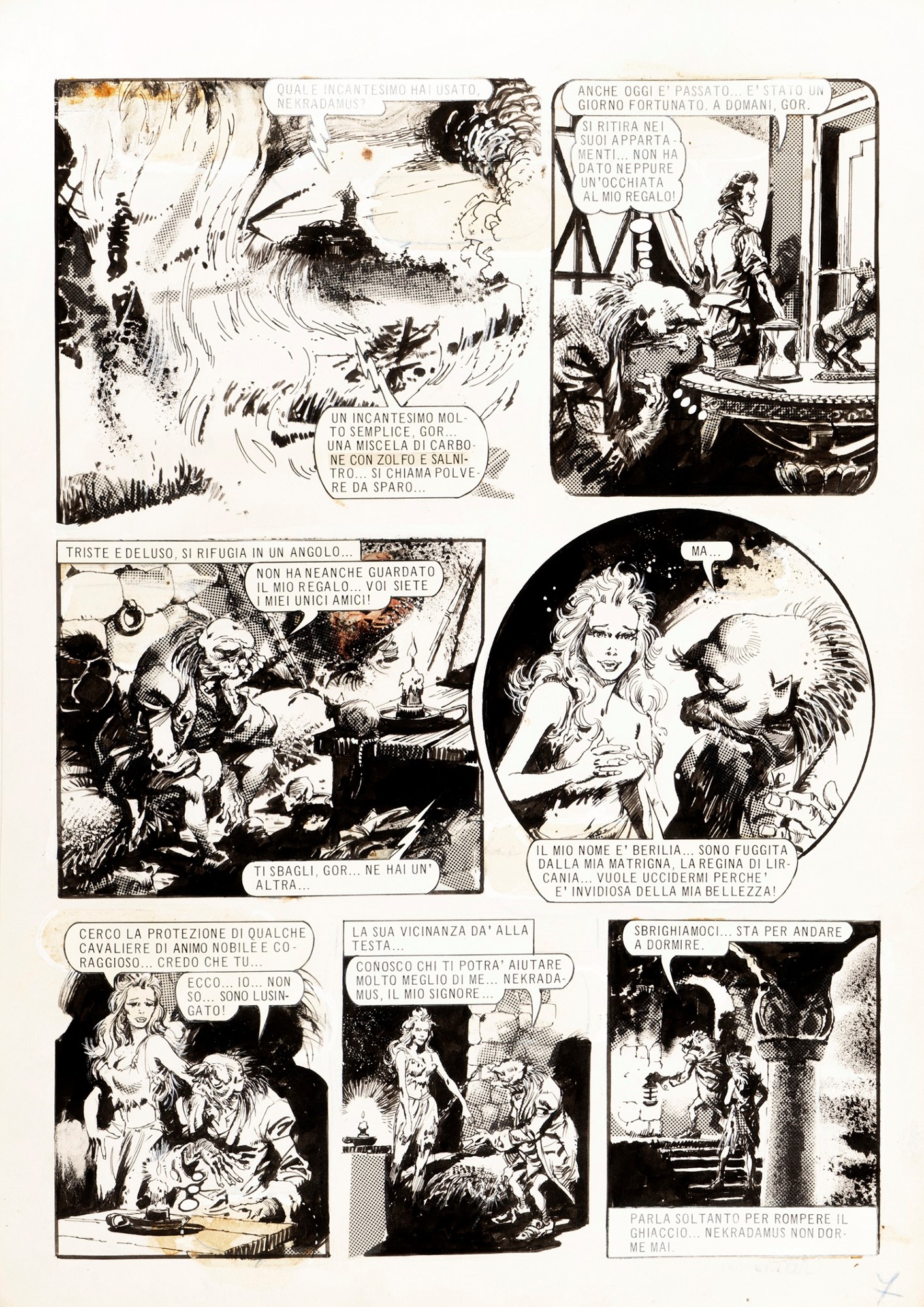 Tavola originale realizzata da Lalia per la pag. 7 di "De venenos crueles y dagas malditas", episodio della celebre saga gotica Nekradamus edita per la prima volta in Argentina su Skorpio Libro de Oro n. 2 nel dicembre del 1976. Testi di Héctor G. Oesterheld.