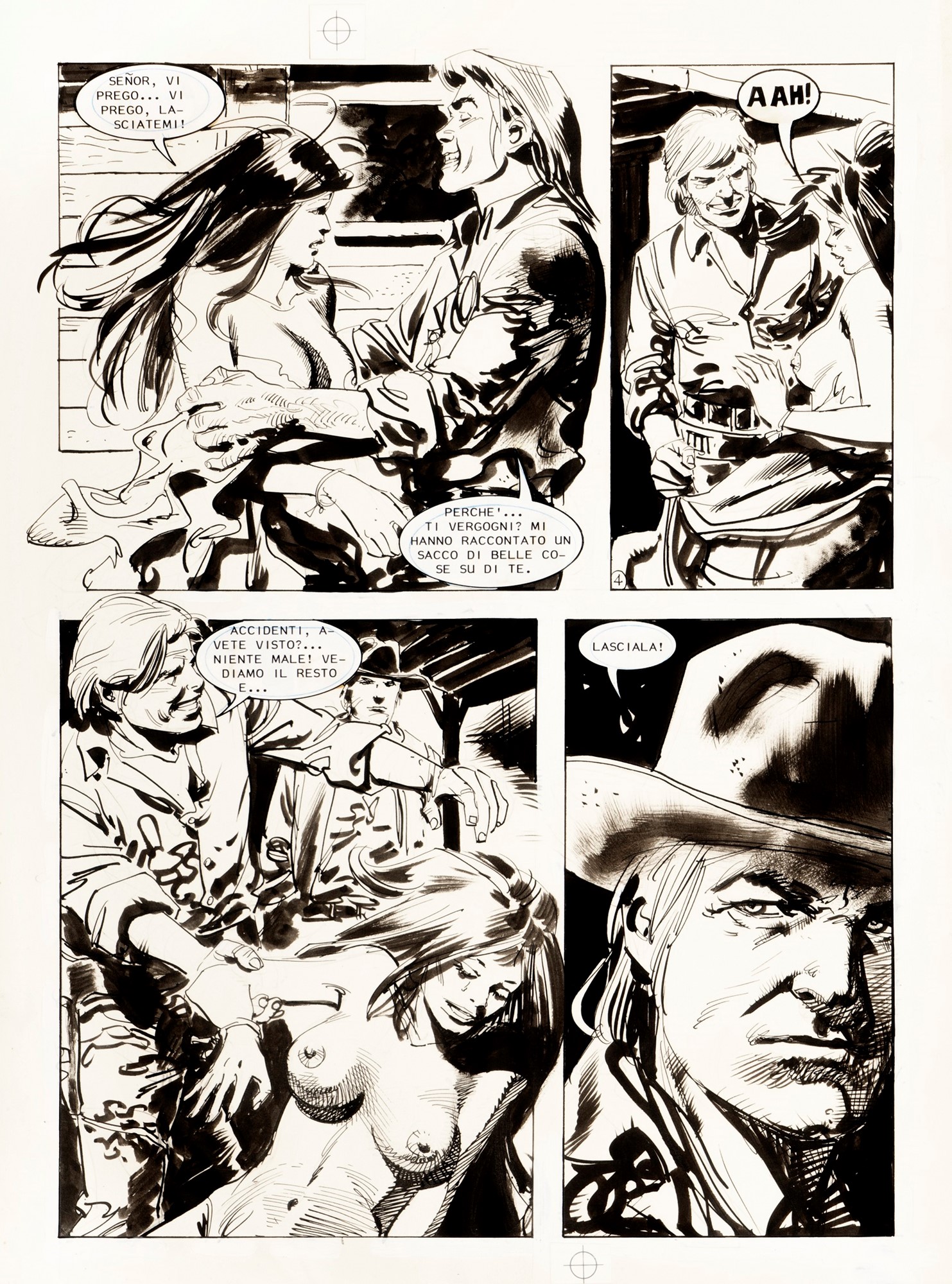 Tavola originale realizzata da Trigo per "La donna dagli occhi verdi", pag. 4 di questa storia pubblicata su Skorpio n. 38 dalla Eura Editoriale nel 1986.