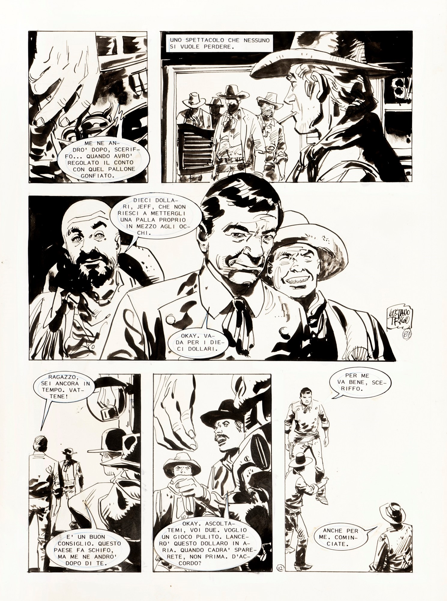 Tavola originale realizzata da Trigo per "La donna dagli occhi verdi", pag. 12 di questa storia pubblicata su Skorpio n. 38 dalla Eura Editoriale nel 1986. Firmata e datata.