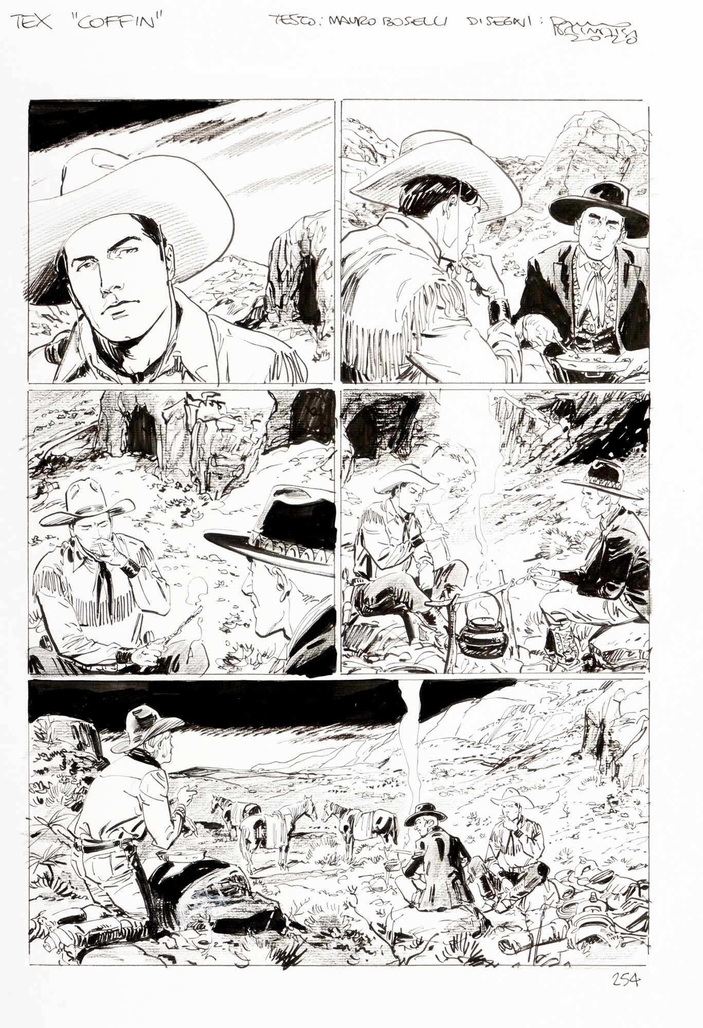 Tavola originale realizzata da Brindisi per "I trafficanti di Coffin", edita su Tex Willer n. 27 a pag. 254 dalla Bonelli nel 2021. Firmata.
