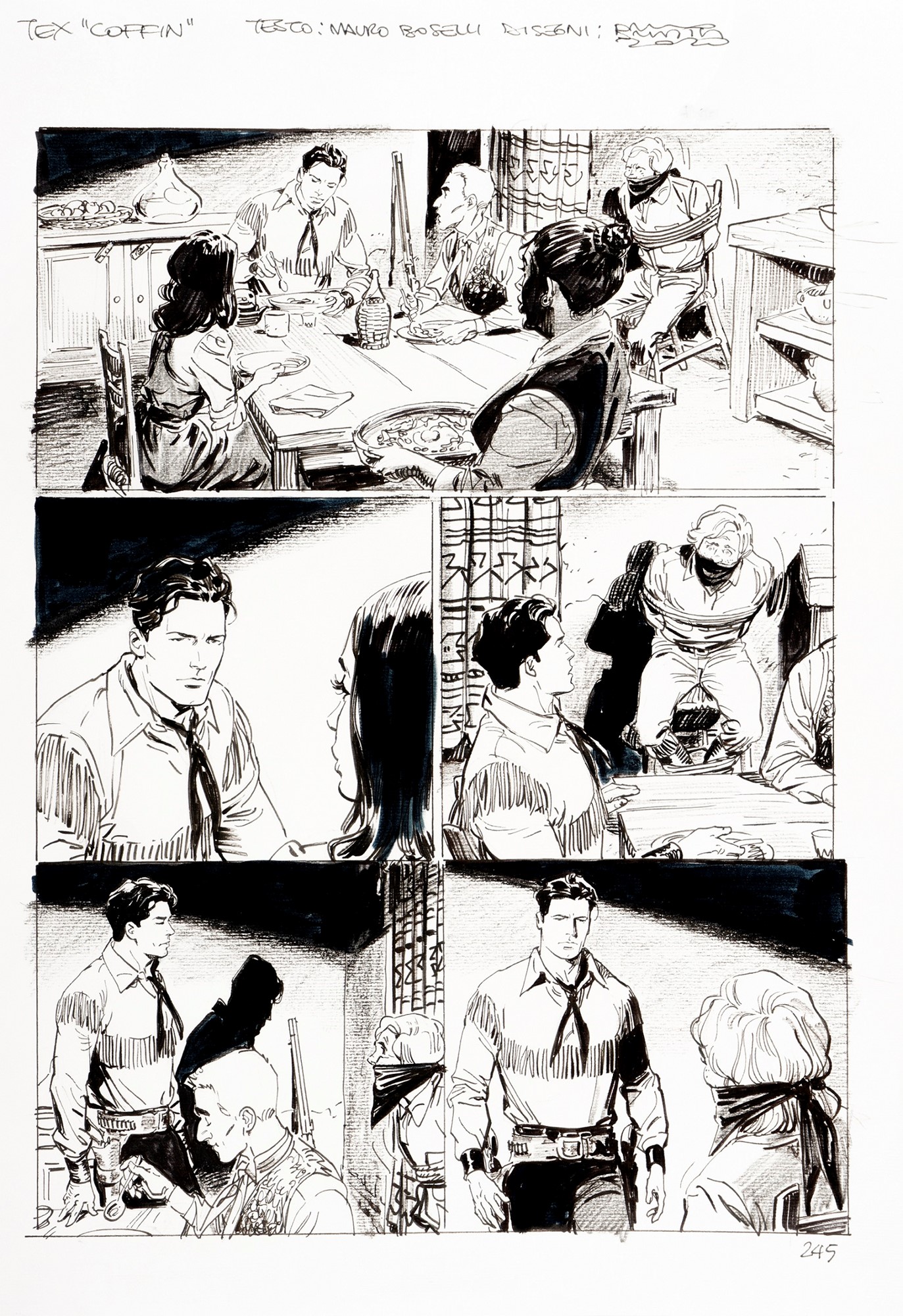 Tavola originale realizzata da Brindisi per "I trafficanti di Coffin", edita su Tex Willer n. 27 a pag. 245 dalla Bonelli nel 2021. Firmata.