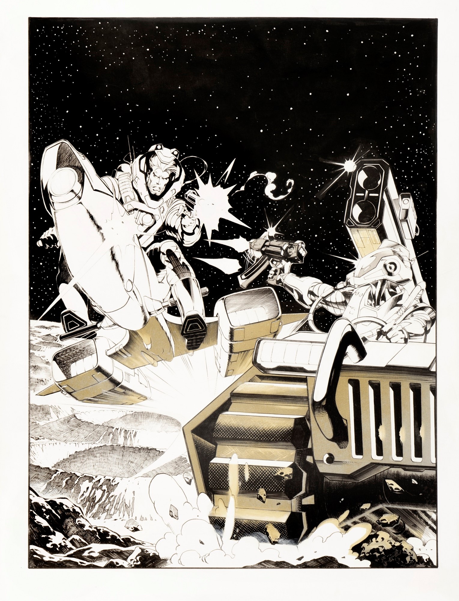 Originale di copertina realizzato da Castellini per "Le tre verità", edito su Nathan Never n. 41 dalla Bonelli nel 1994. Una pietra miliare del fumetto italiano, una delle rarissime copertine del maestro romano che su questa mitica serie fantascientifica rivelò al mondo il suo incredibile talento. Firmata.