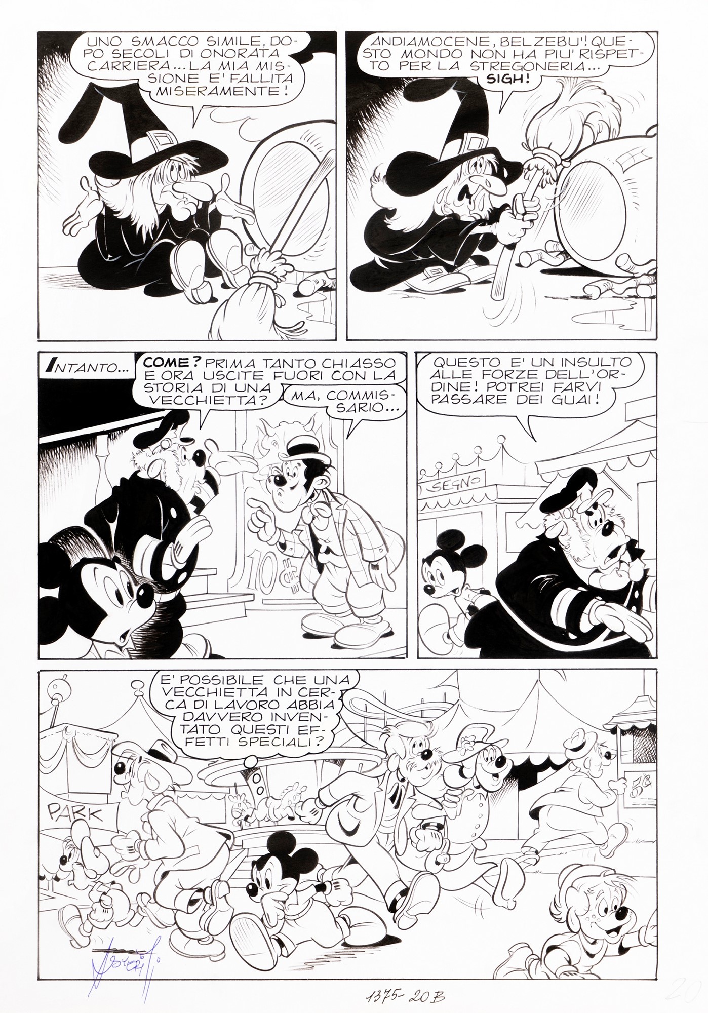 Tavola originale realizzata da Asteriti per "Pippo e il luna park stregato", edita su Topolino n. 1375 a pag. 20 nell'Aprile 1982. Firmata.