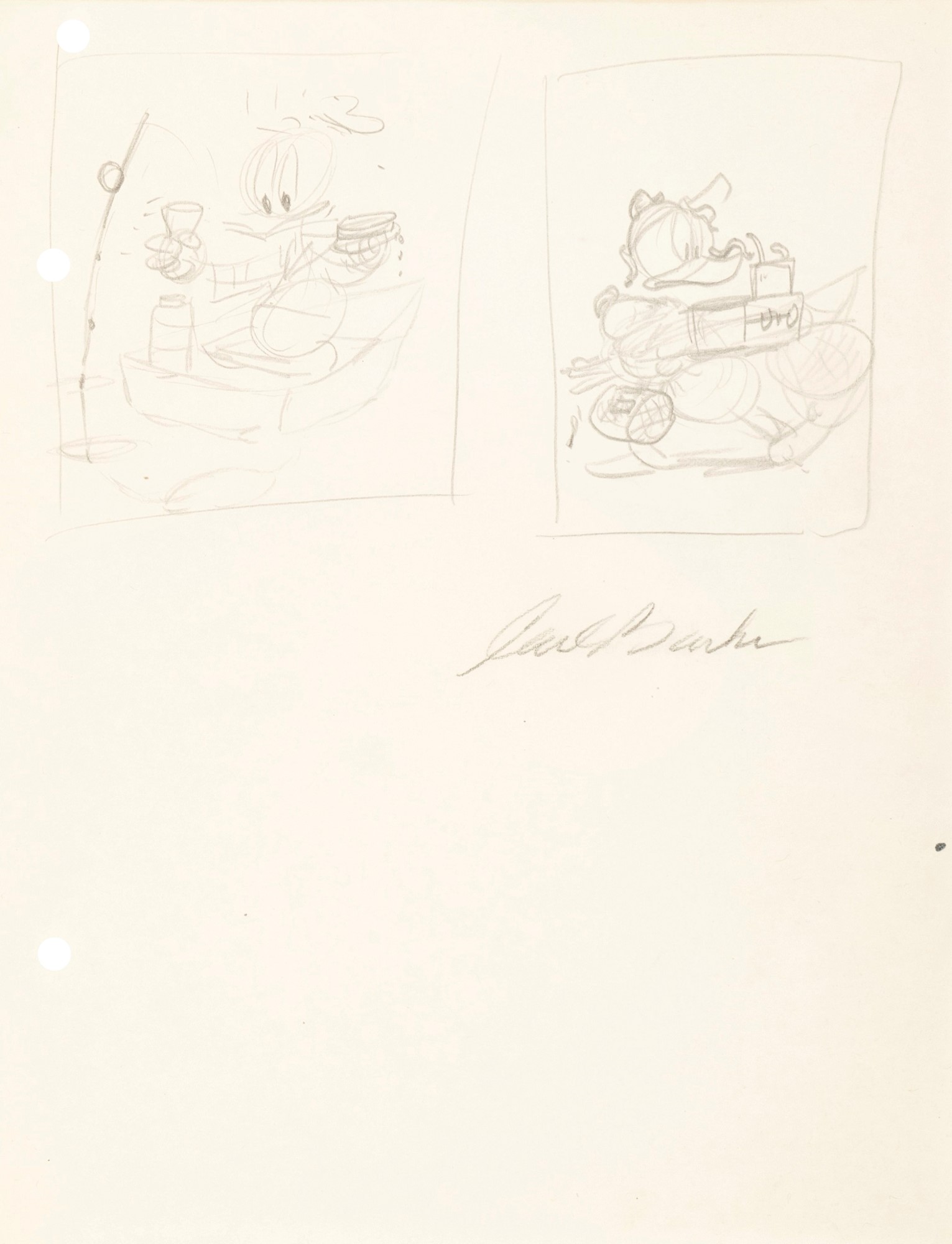 Disegno preliminare realizzato da Barks negli anni '70 probabilmente per uno dei suoi dipinti ad olio. Firmato.