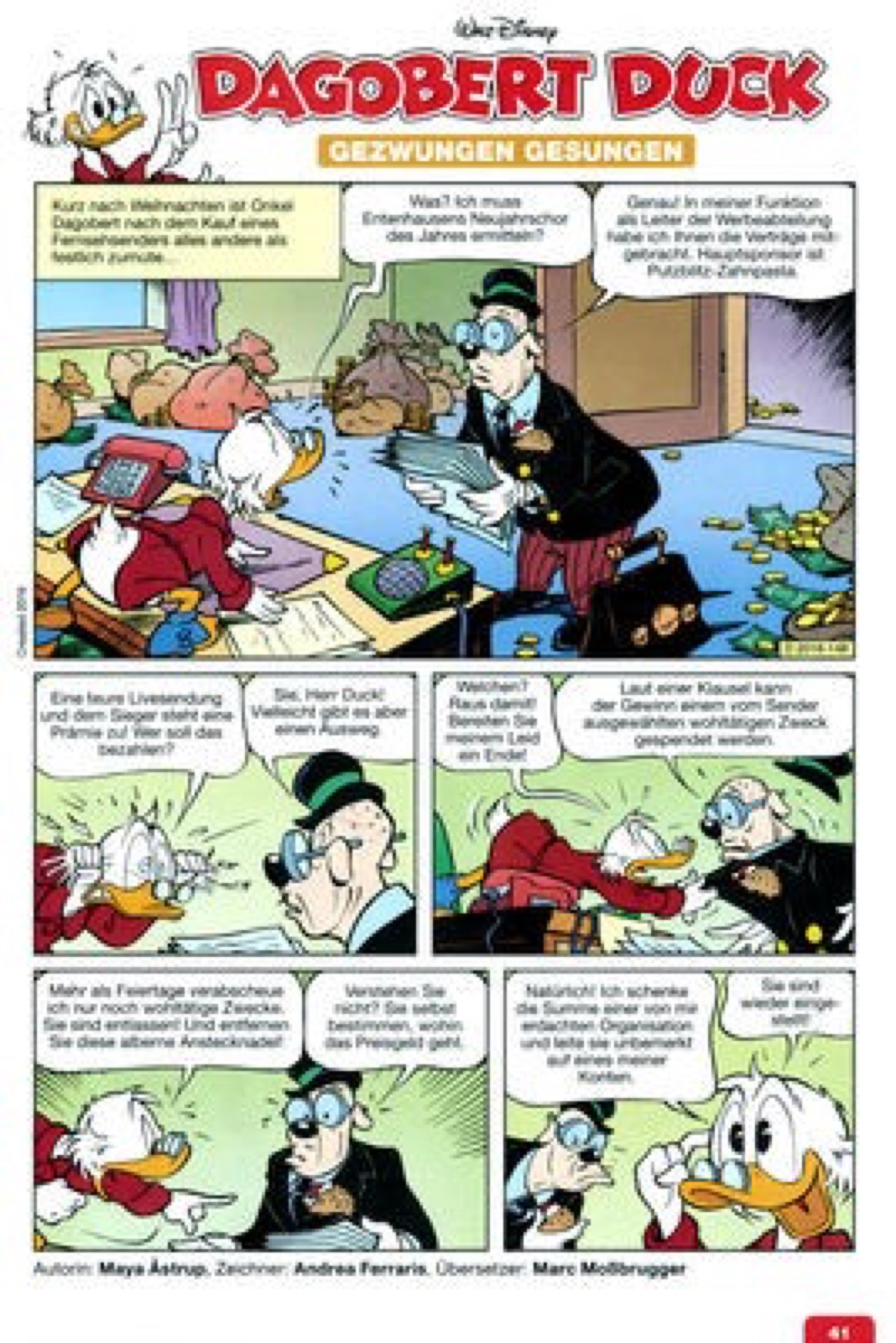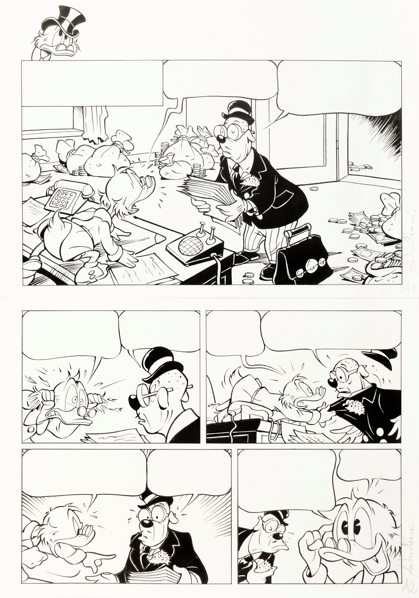 Tavola originale realizzata da Ferraris per "Song of the Pure Hearted", edita in Germania su Micky Maus n. 1 nel 2017. Codice INDUCKS: D 2016-148. Su due pannelli. Firmata.