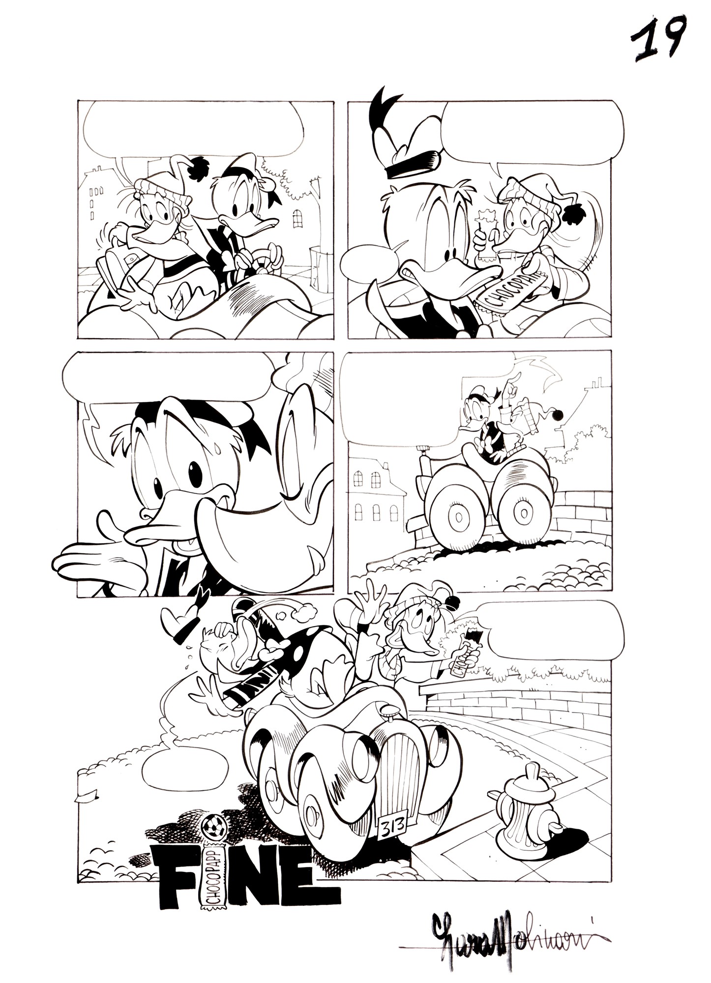 Tavola originale realizzata dalla Molinari per "Paperino e l'irraggiungibile Chocopapp", edita su Topolino n. 2812 a pag. 19 nell'Ottobre 2009. Firmata.