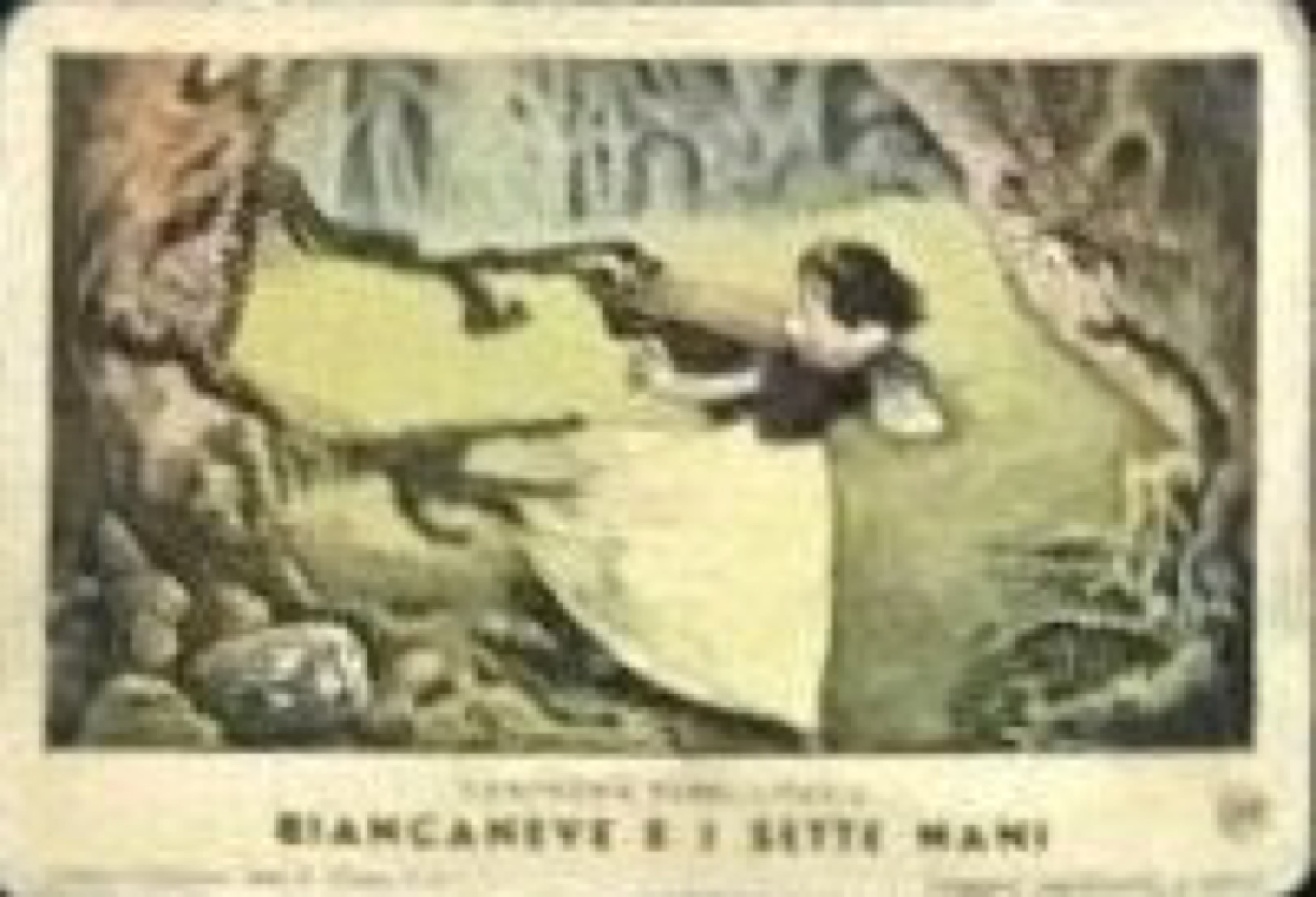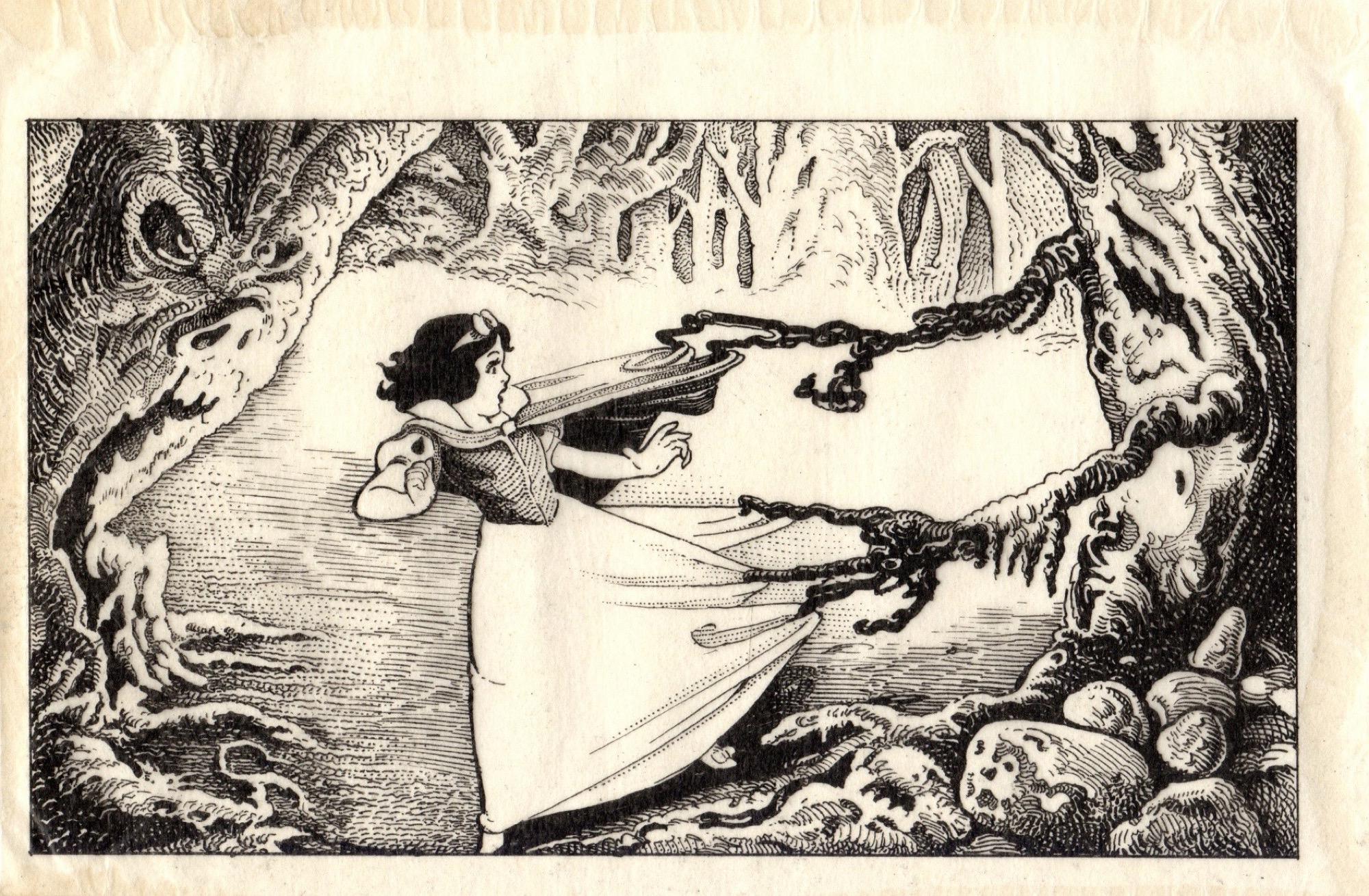 Disegno originale realizzato da Zucchi per una figurina della raccolta per il concorso Elah "Biancaneve e i sette nani", distribuita in omaggio con i prodotti Elah nel 1939 e prodotte dalla Gros Monti&C di Torino, unico concessionario Disney in Italia dell´epoca.