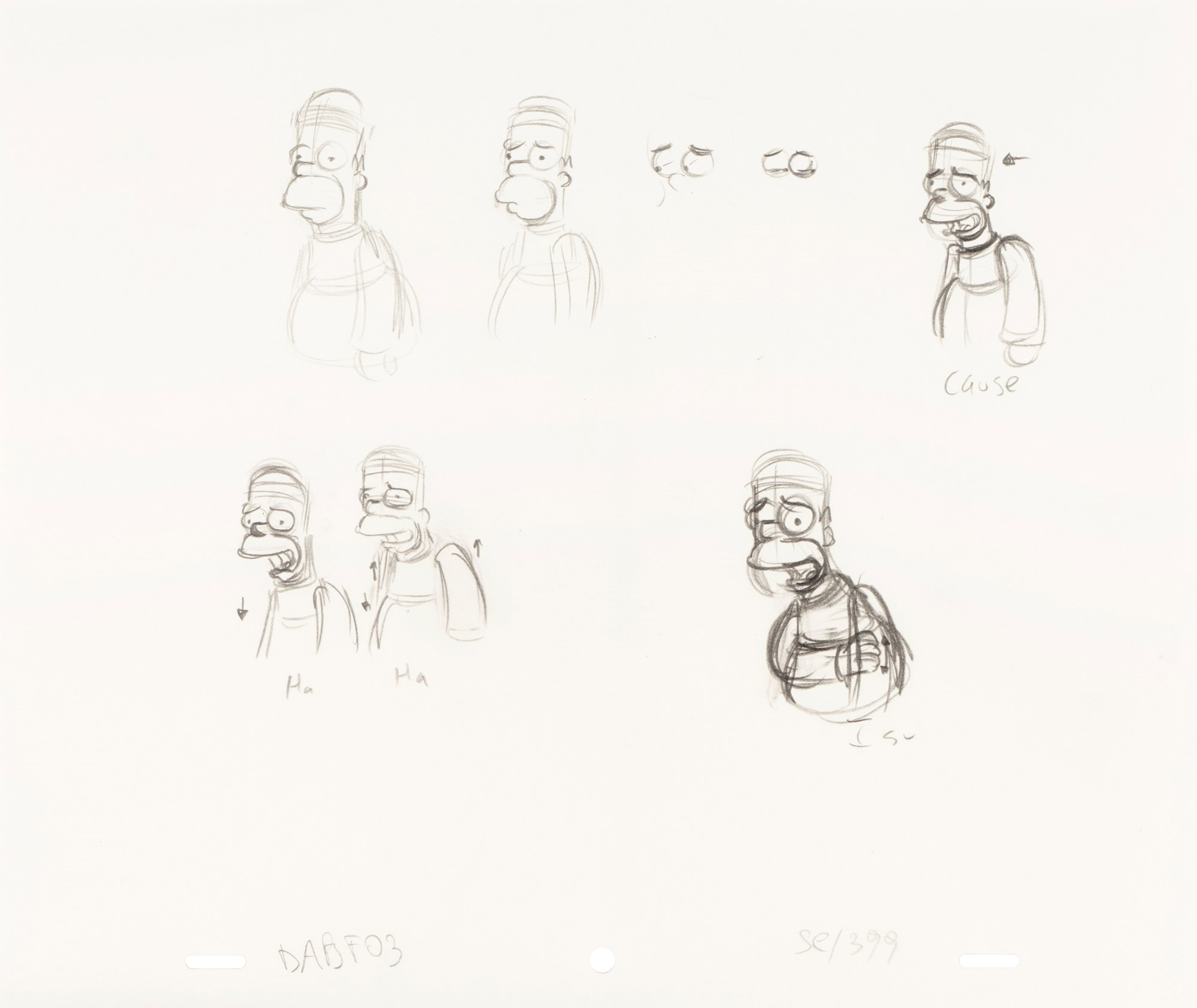 Disegno di produzione realizzato dallo Studio Groening per "Sweets and Sour Marge" episodio n. 8 della 13° stagione de I Simpson, trasmesso per la prima volta negli USA nel 2002 e in Italia nel 2003 con il titolo "Dolce e amara Marge". Lieve piega verticale.