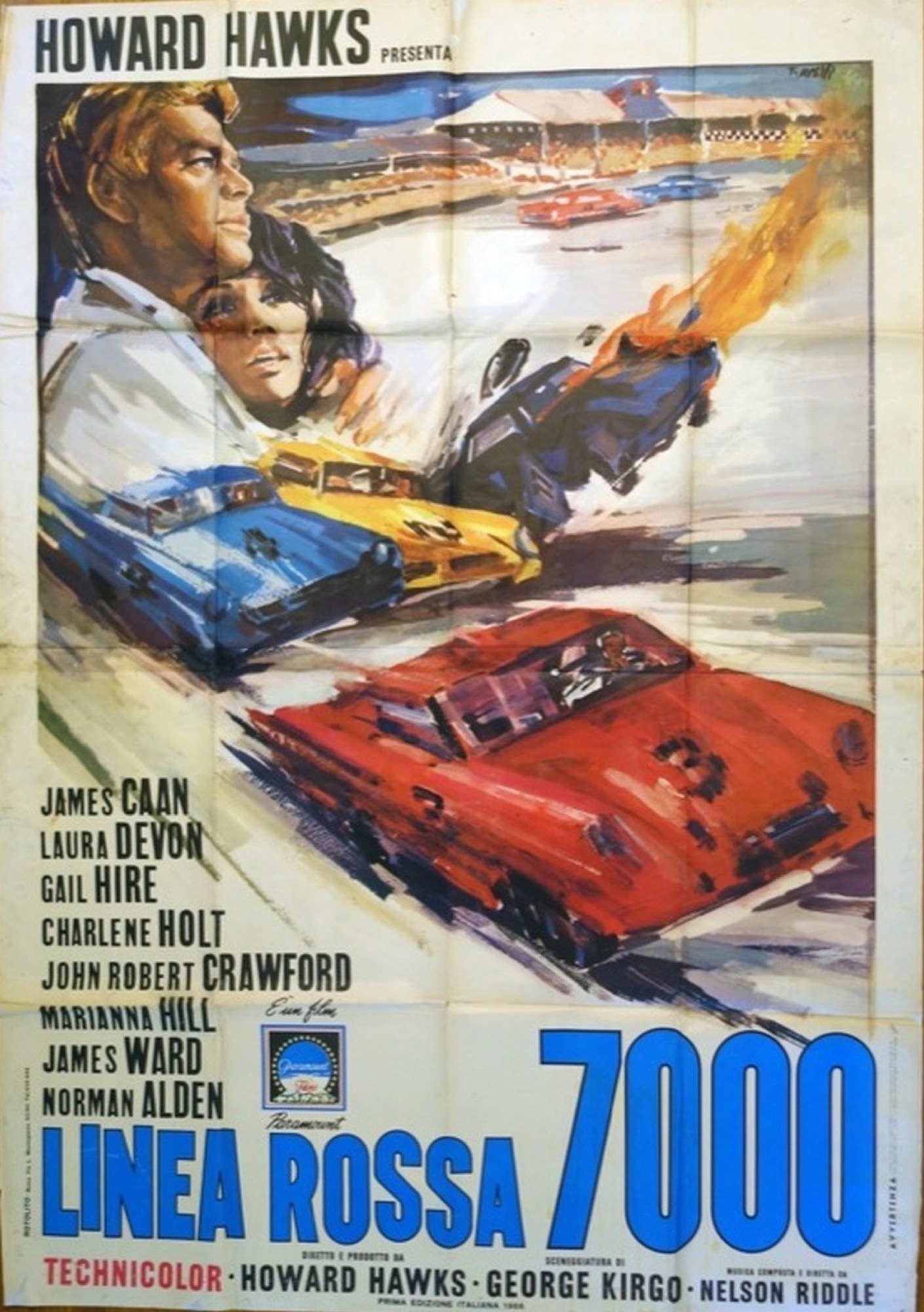 Bozzetto originale realizzato da Avelli per la locandina ufficiale del film "Linea rossa 7000", diretto da Howard Hawks con James Caan e Laura Devon nel 1965. Lievi pieghe e fori di affissione agli angoli. Firmato.