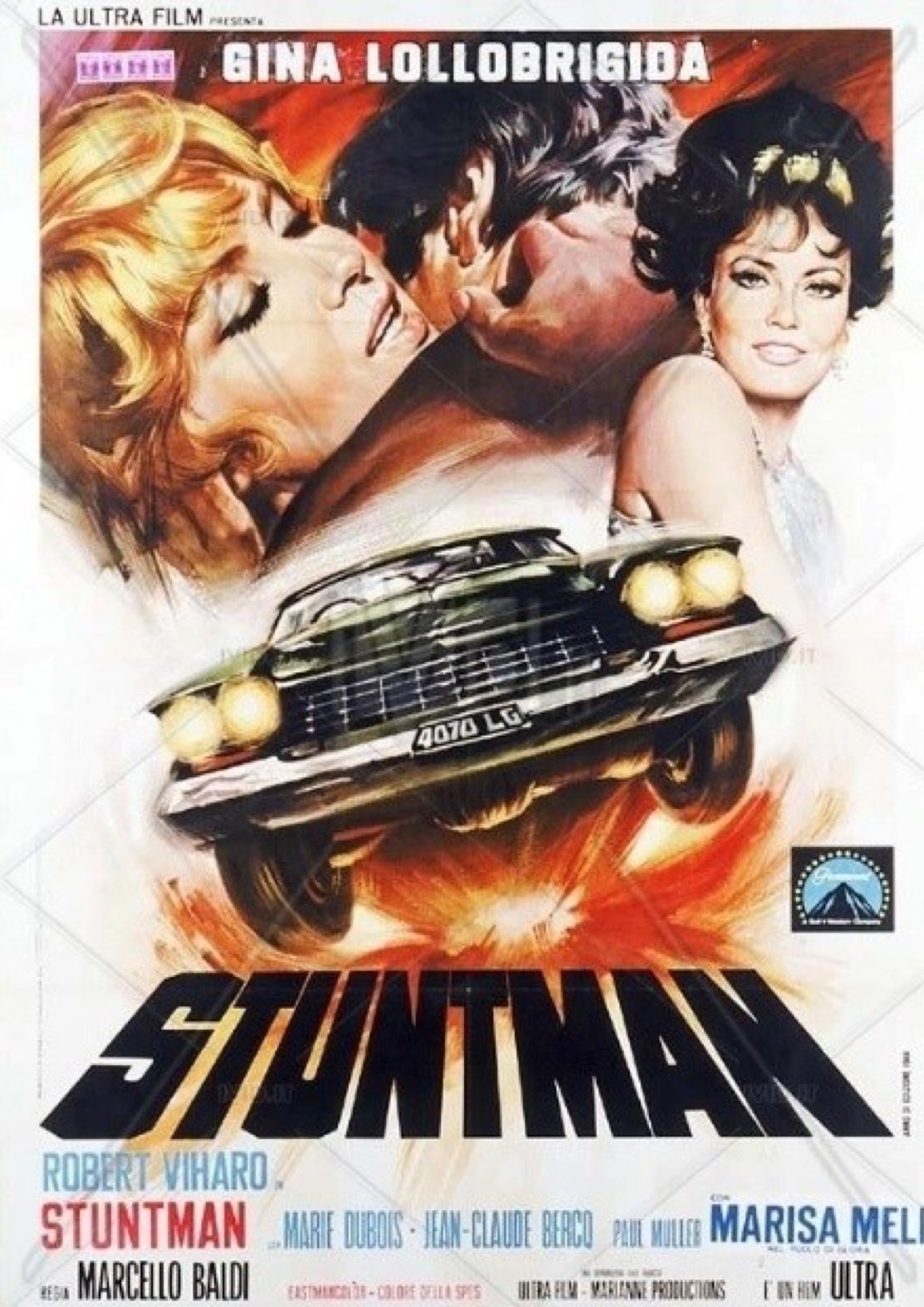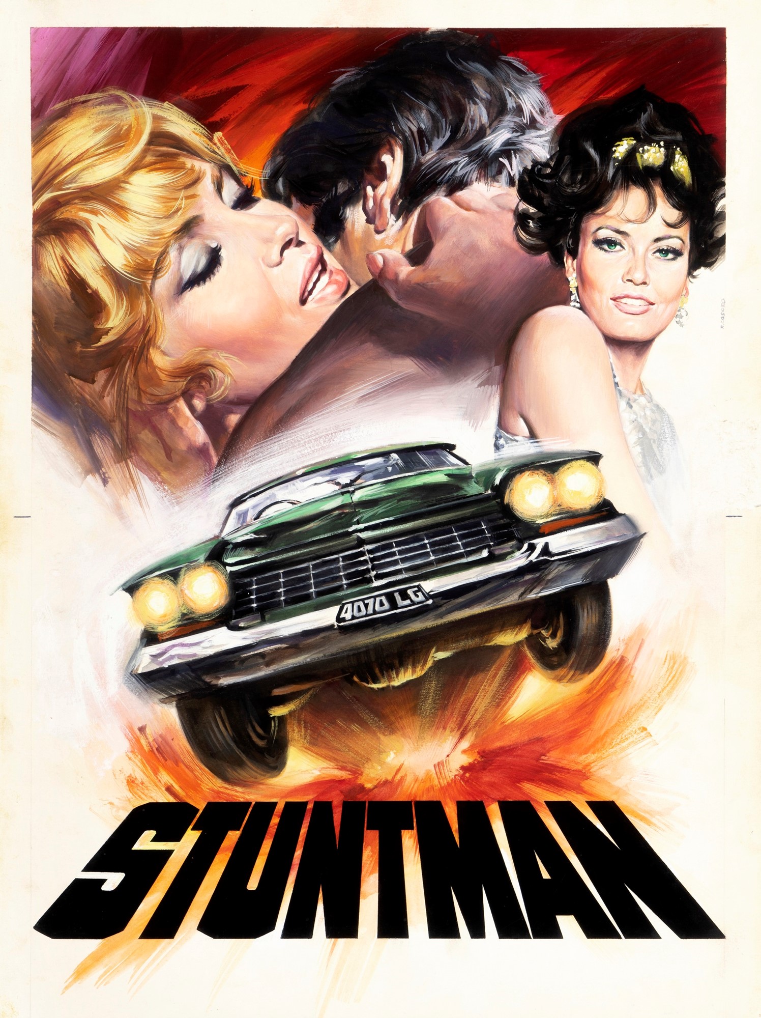 Bozzetto originale realizzato da Casaro per la locandina ufficiale del film "Stuntman", diretto da Marcello Baldi con Jean Claude Berq, Marie Dubois e Gina Lollobrigida nel 1968. Firmato.