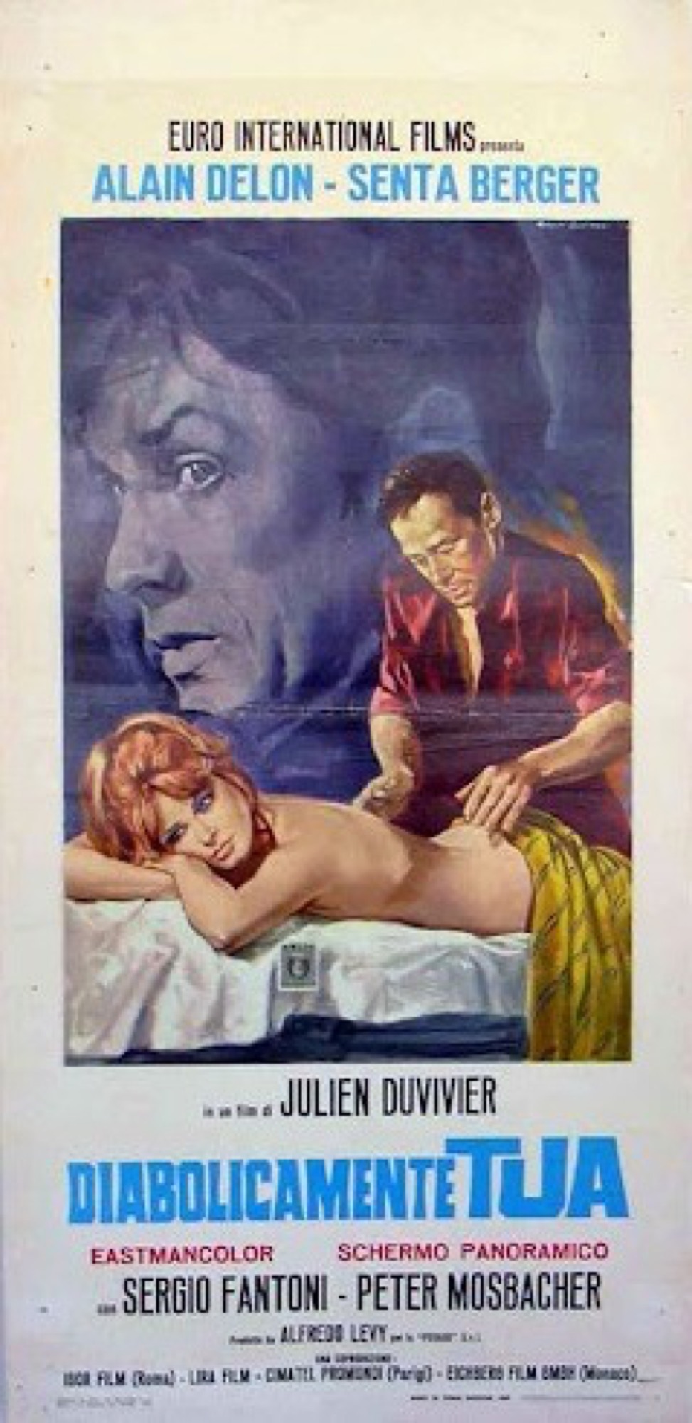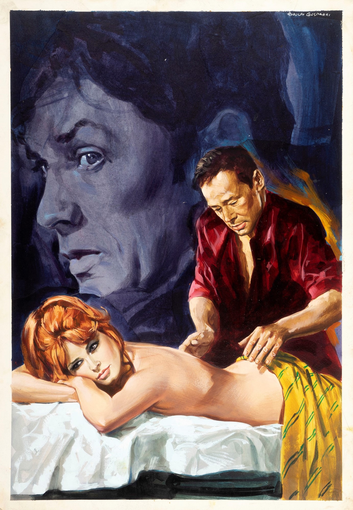 Bozzetto originale realizzato da Gasparri per la locandina ufficiale del film "Diabolicamente tua", diretto da Julien Duvivier con Alain Delon e Senta Berger nel 1967. Firmato.