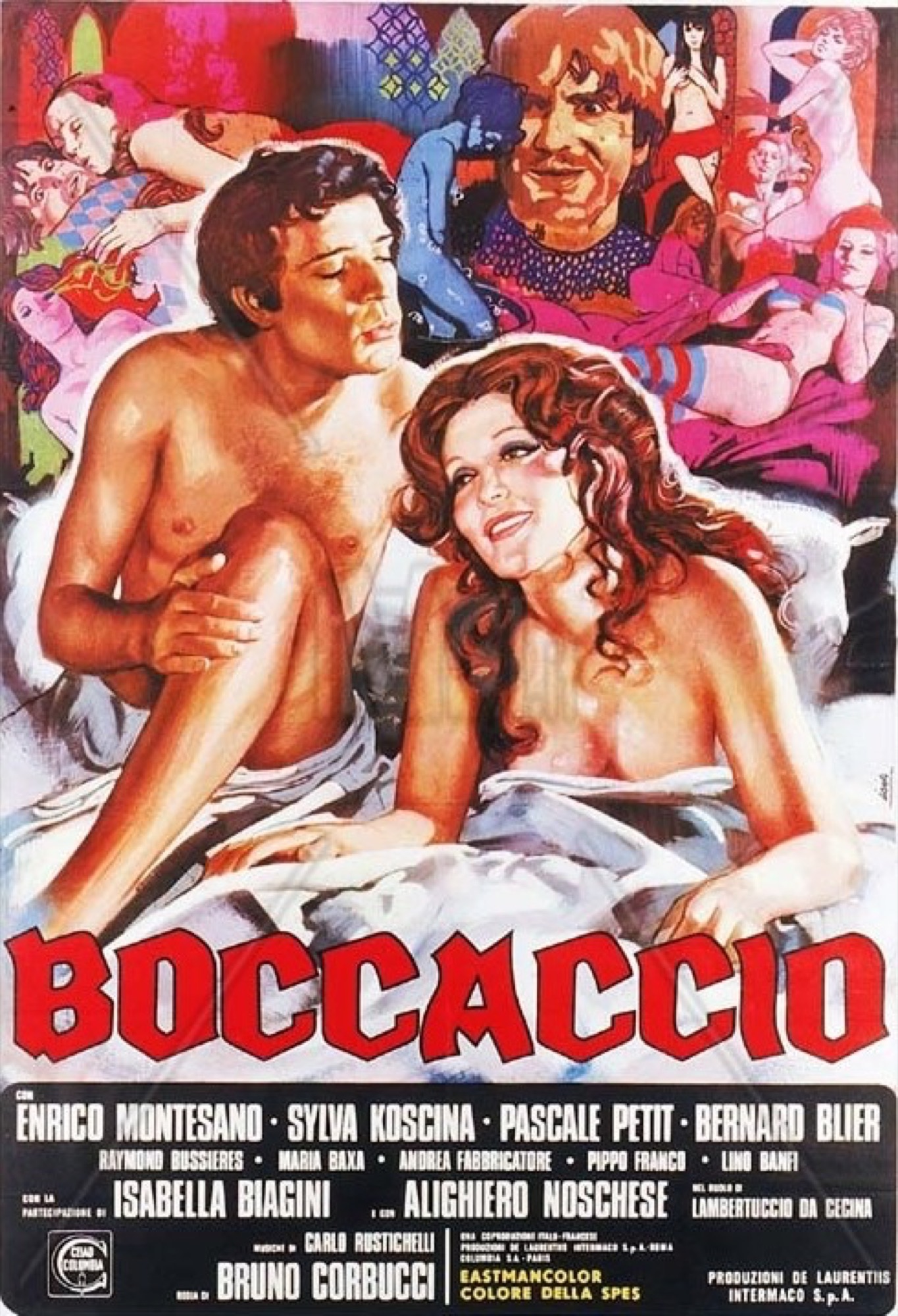 Bozzetto originale realizzato da Iaia per la locandina ufficiale del film "Boccaccio", diretto da Bruno Corbucci con Enrico Montesano, Sylva Koscina e Alighiero Noschese nel 1972. Firmato.