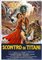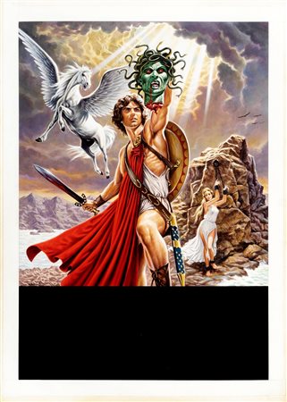 Bozzetto originale realizzato da Napoli per la versione italiana della locandina ufficiale del film "Scontro di titani", diretto da Desmond Davis con Laurence Olivier, Maggie Smith e Ursula Andress, prodotto dalla Metro-Goldwyn-Mayer nel 1981. Un film che riscosse un enorme successo al botteghino, divenuto di culto tra gli amanti del genere fantasy/epico. Firmato.