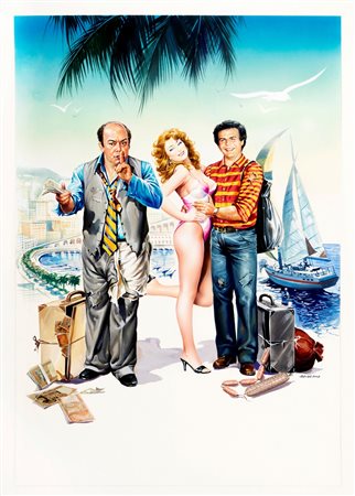 Bozzetto originale realizzato da Spataro per la locandina del film inedito intitolato "Easy come easy go", che avrebbe visto come protagonisti Lino Banfi e Jerry Calà. Firmato.