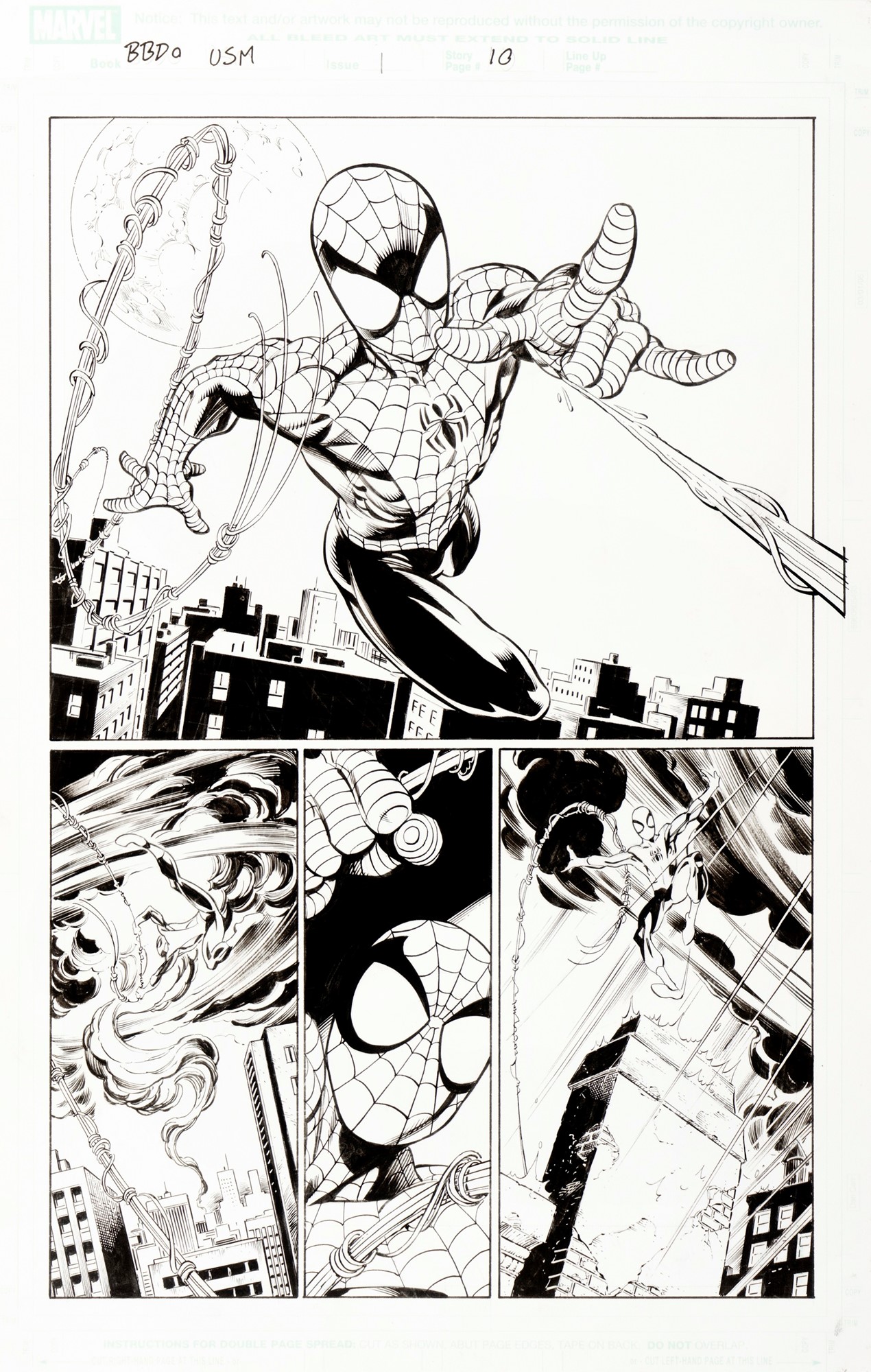 Tavola originale realizzata da Bagley per l'albo speciale "BBDO Campbell's Diversity Ultimate Spider-Man/Ultimate X-Men" n. 1, edita a pag. 10 dalla Marvel nel 2009. Chine di Scott Hanna. Firmata al retro da Hanna.