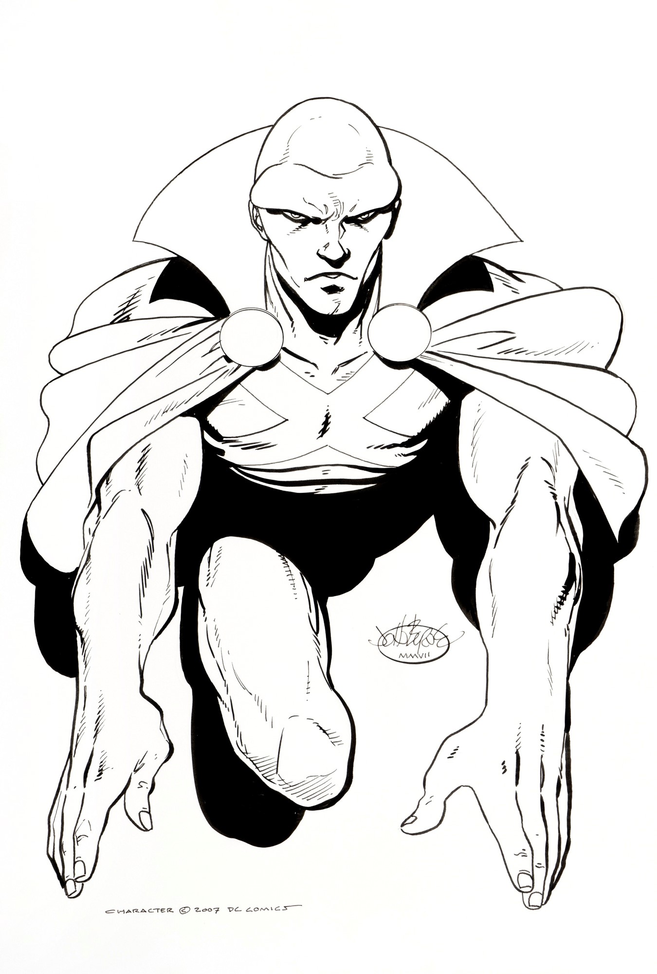 Illustrazione originale realizzata da Byrne nel 2007, un maestoso Martian Manhunter. Firmata e datata.