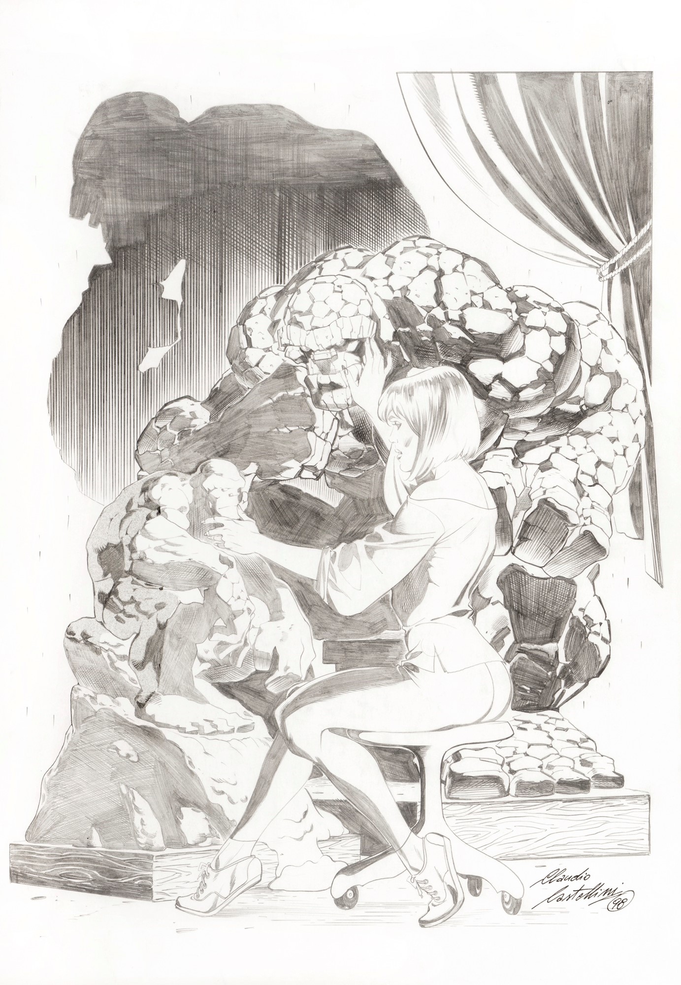 Illustrazione originale realizzata da Castellini in omaggio al mondo dei supereroi che lo rese celebre in tutto il mondo, un'immagine piena di sentimento e umanità. Firmata e datata.