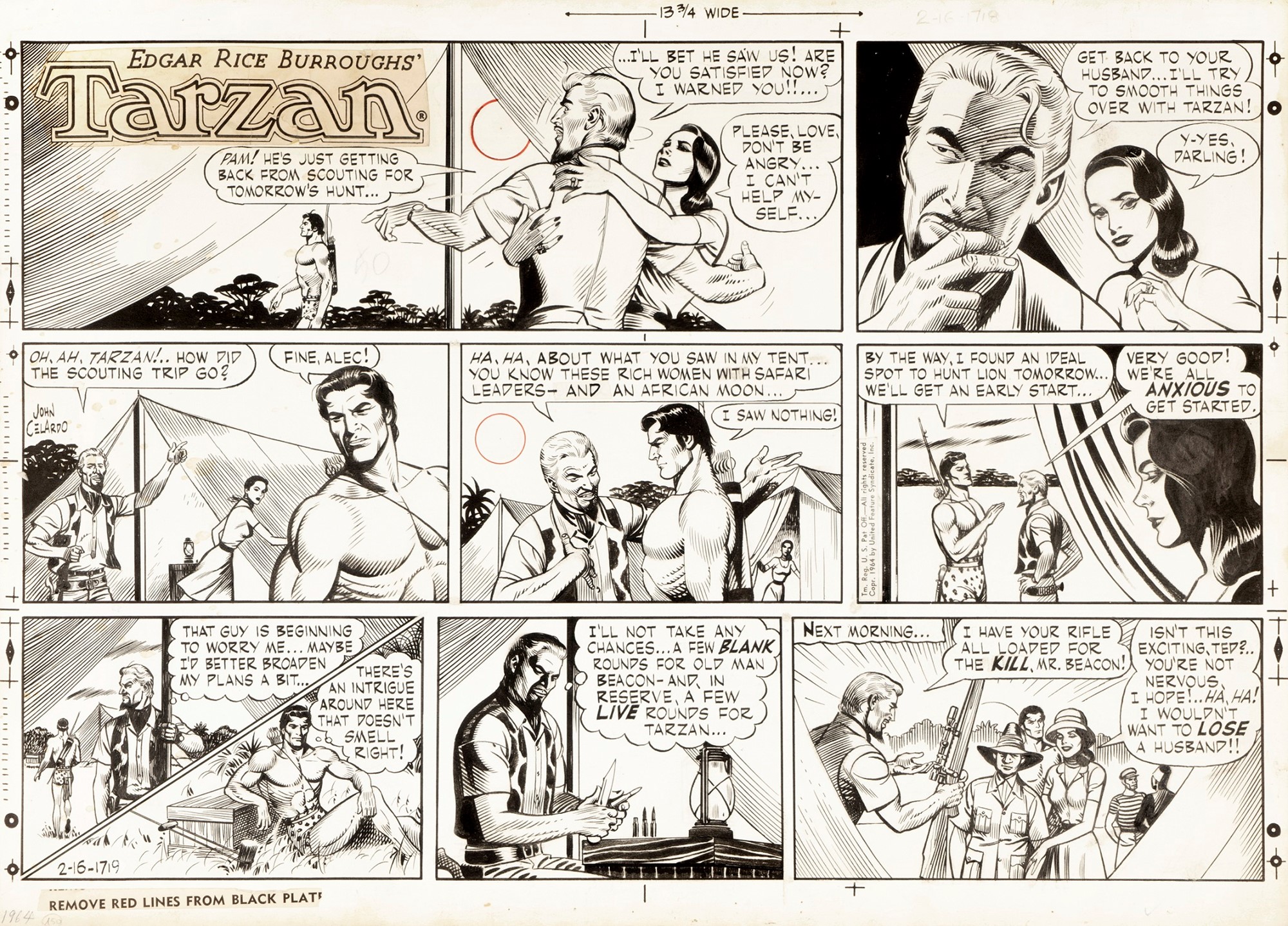 Tavola domenicale n. 1719 del 16/02/1964 per "Tarzan". Firmata e datata.
