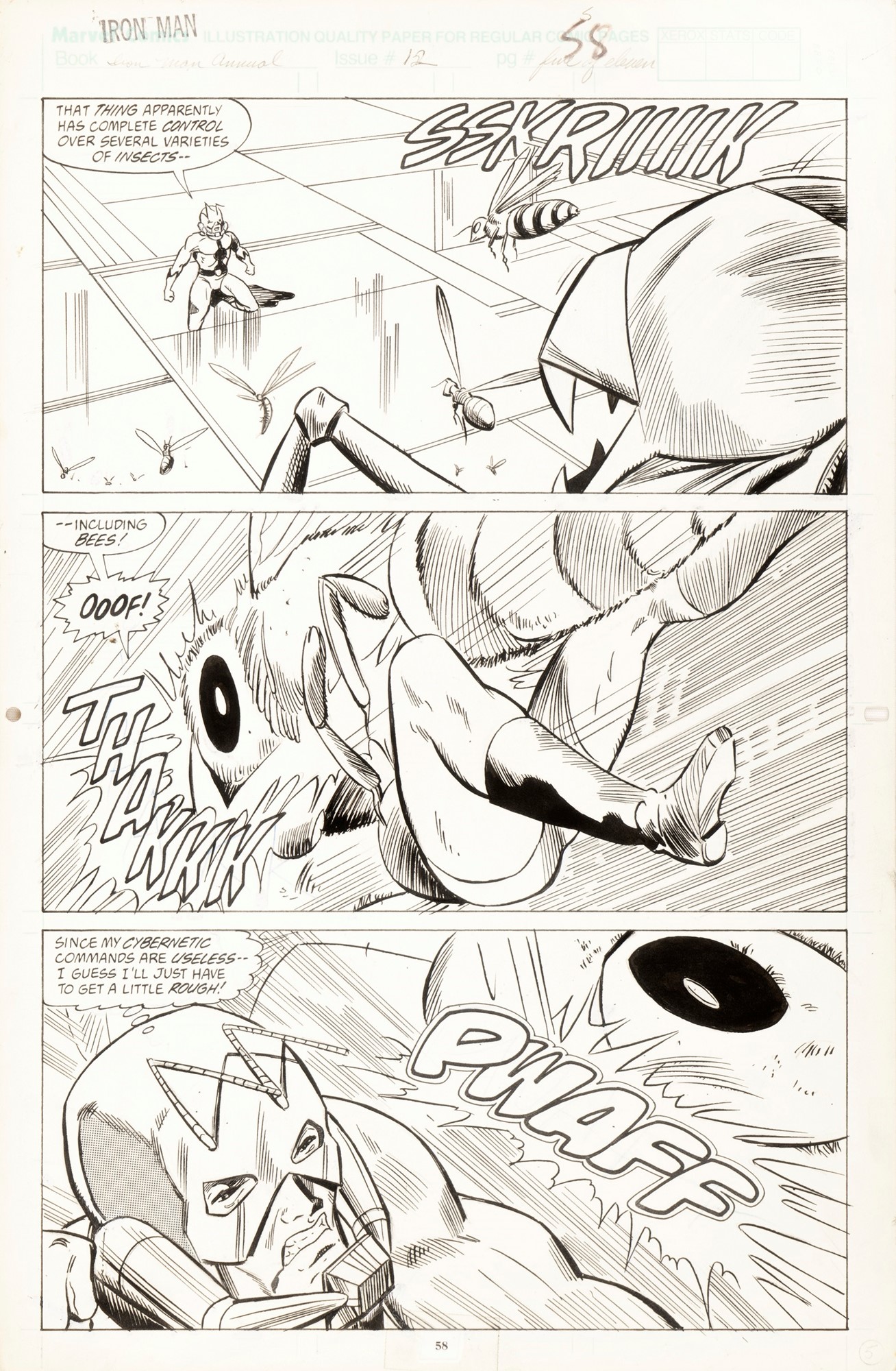 Tavola originale realizzata da Curtis per “Metamorphosis”, edita su Iron Man Annual n. 12 a pag. 58 dalla Marvel nel 1991.