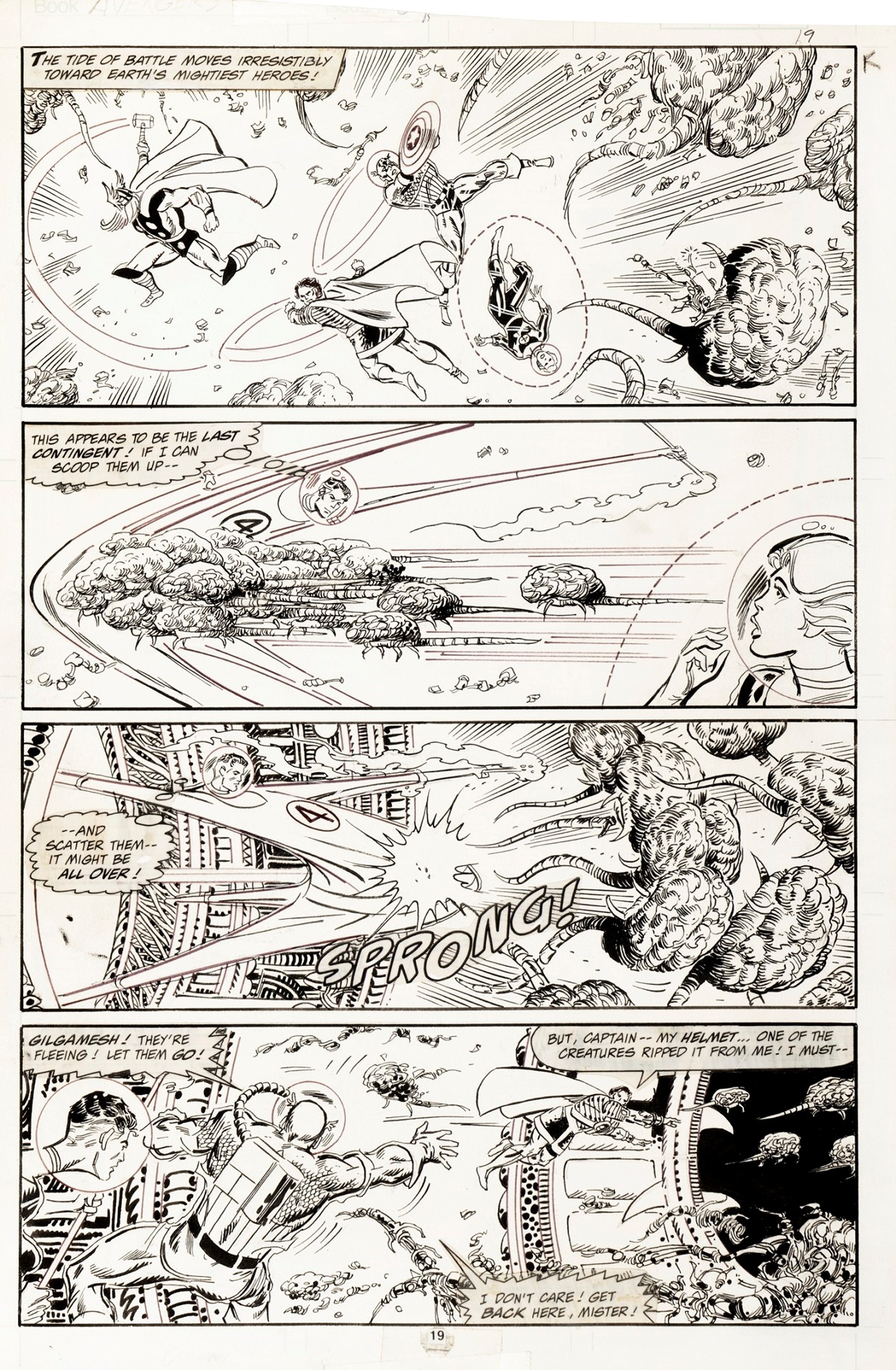 Tavola originale realizzata da Hall per "Super Nova Unbound!", edita su Avengers n. 301 a pag. 19 dalla Marvel nel 1989.